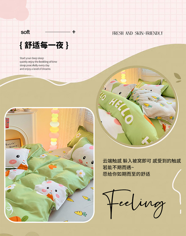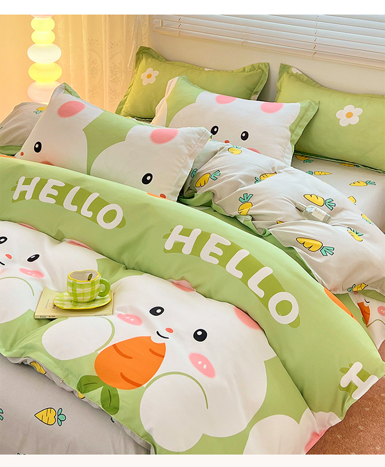 卡斯诺 2023新款芦荟棉四件套10月新花型 可爱小兔