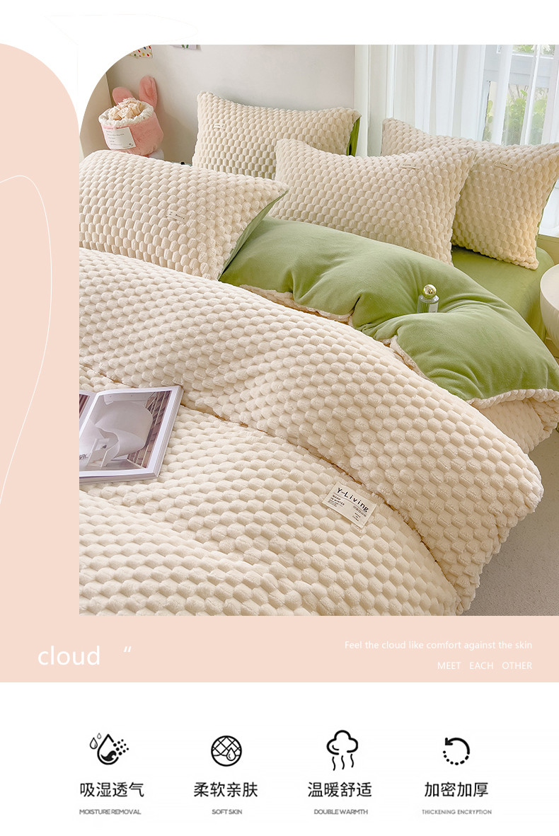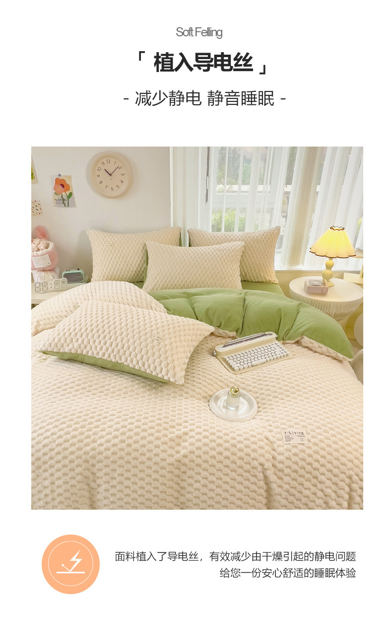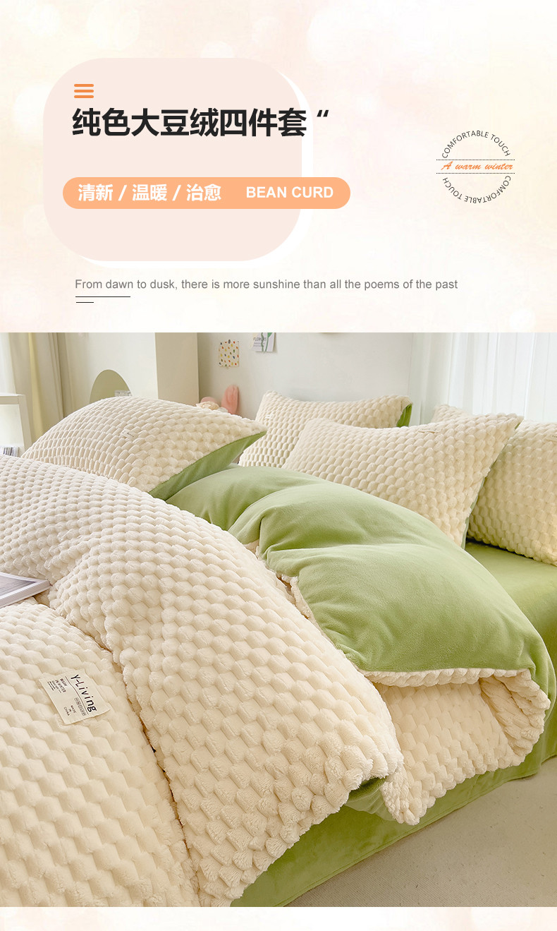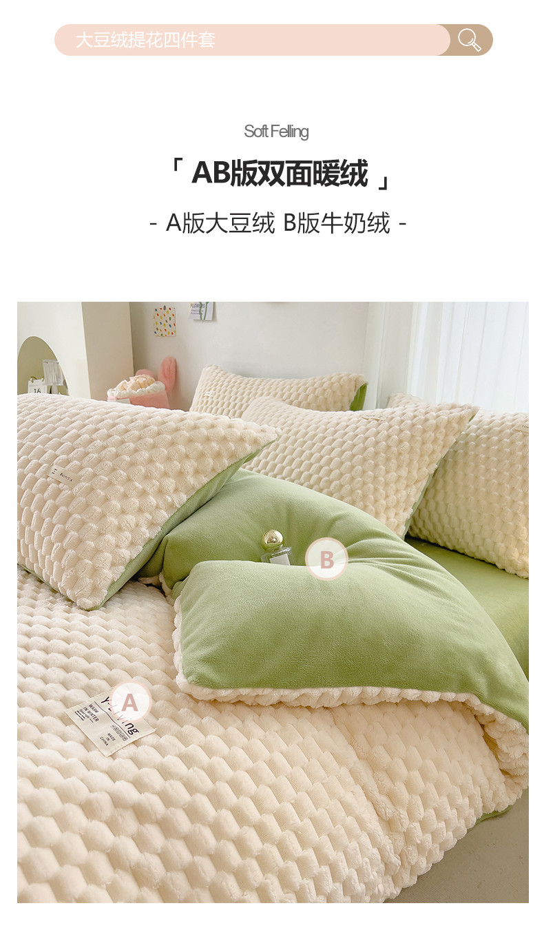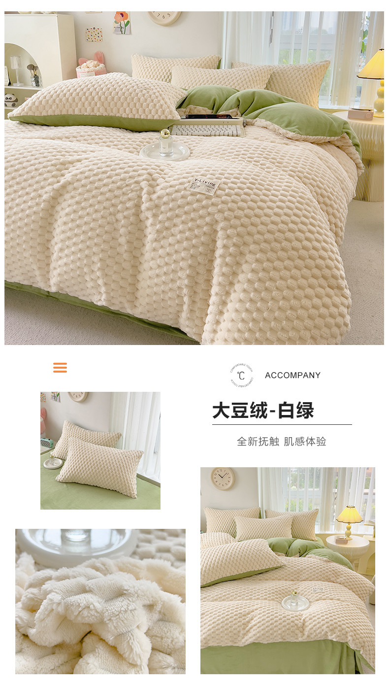 商品名称:宜代光年 2023新款豆豆绒纯色提花四件套 大豆绒-白绿