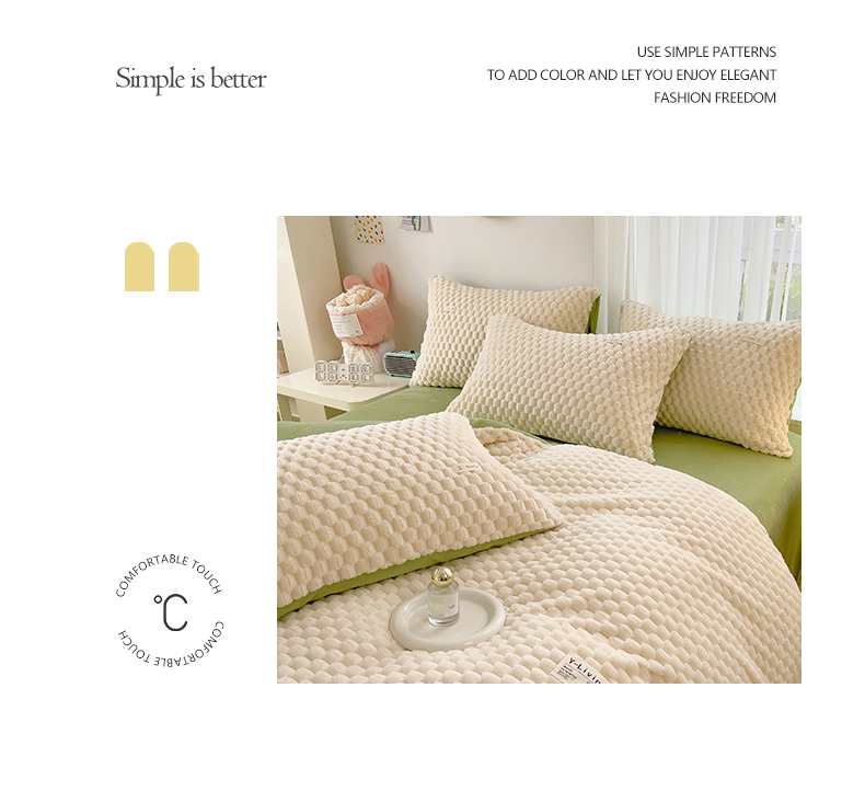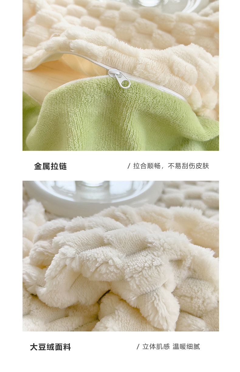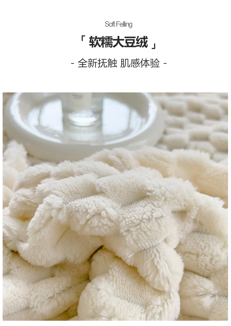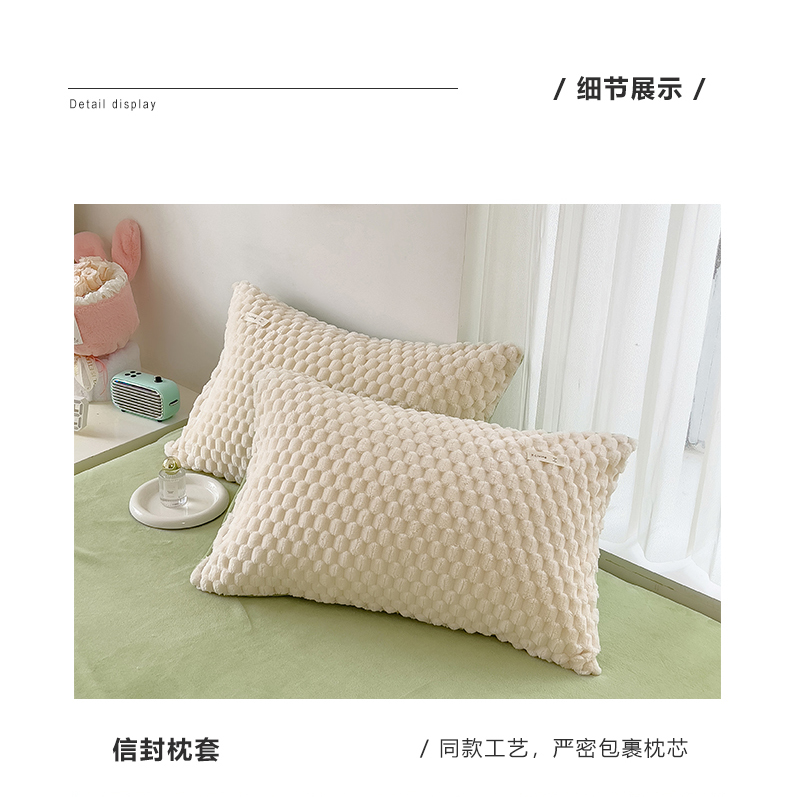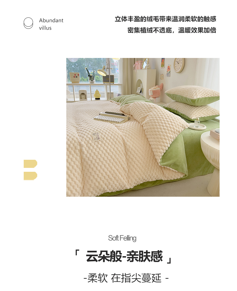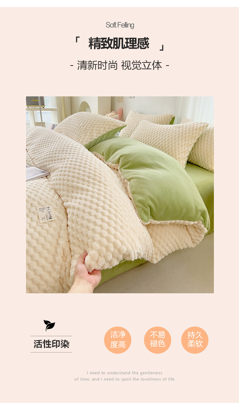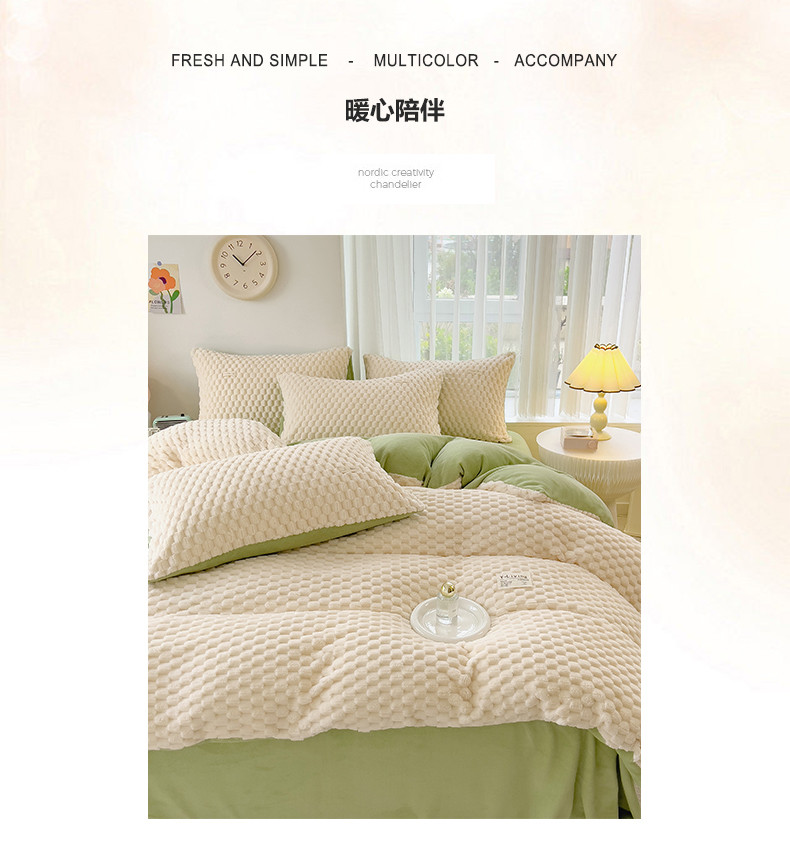 商品名称:宜代光年 2023新款豆豆绒纯色提花四件套 大豆绒-白绿