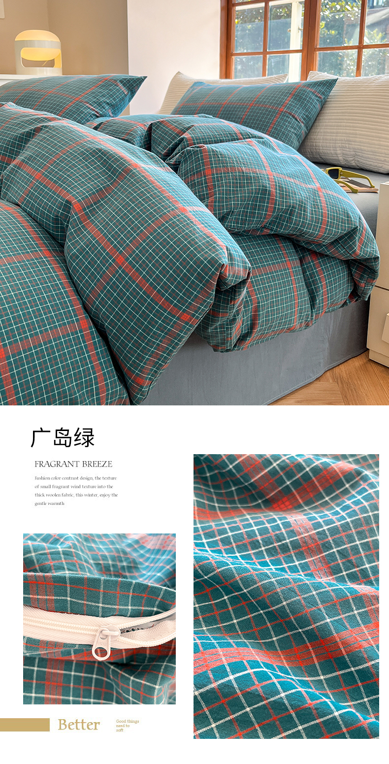当前位置: 91家纺网 > 商品网购 > 床品套件 > 四件套 > 水洗棉四件套 > 北欧良品 2023新款色织水洗棉四件套 广岛绿