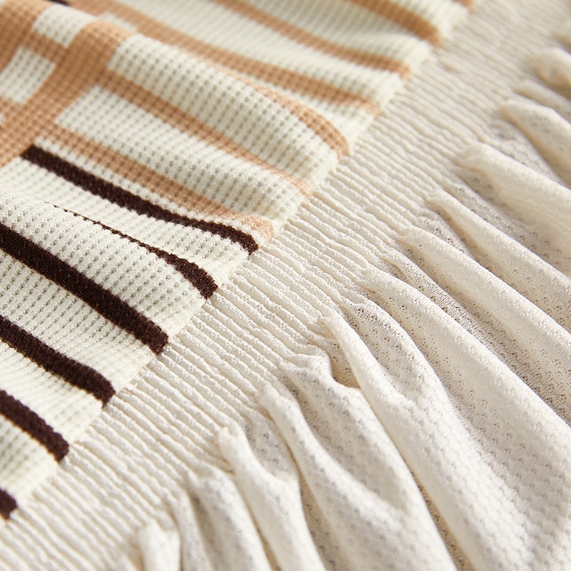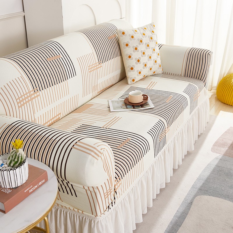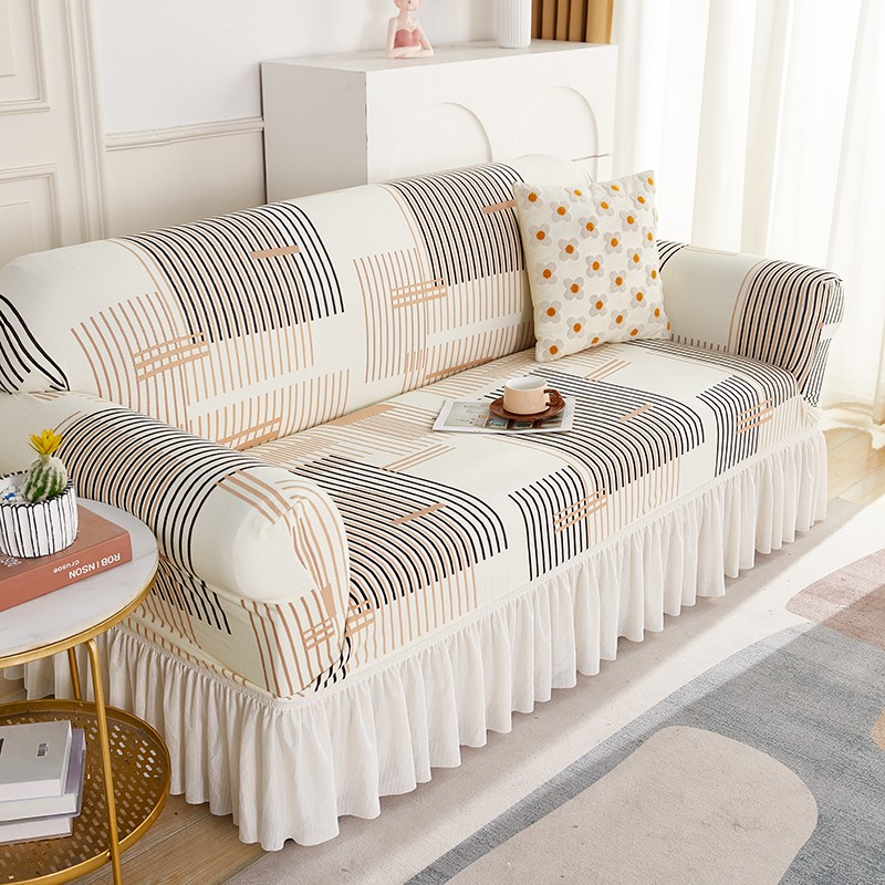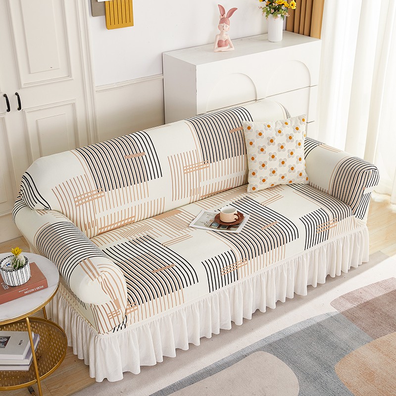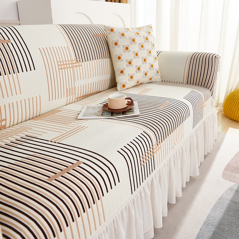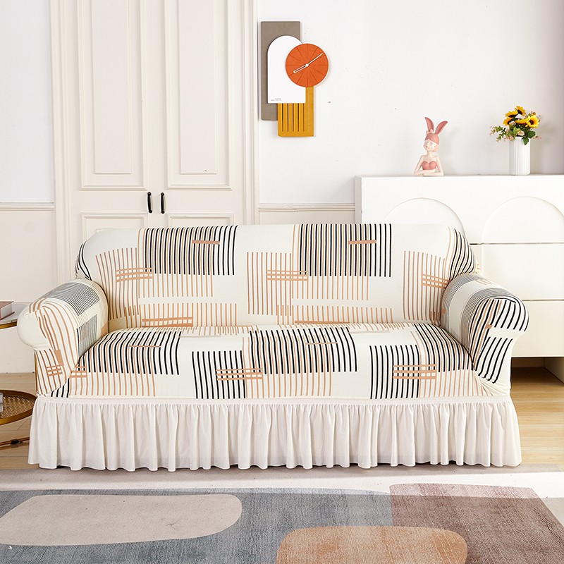 丝绮鹿 2023新款针织柔肤格沙发套(裙边款) 简素线条-黑