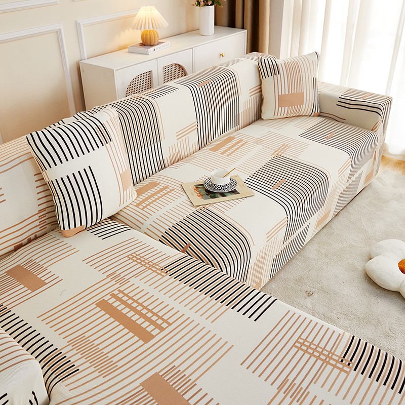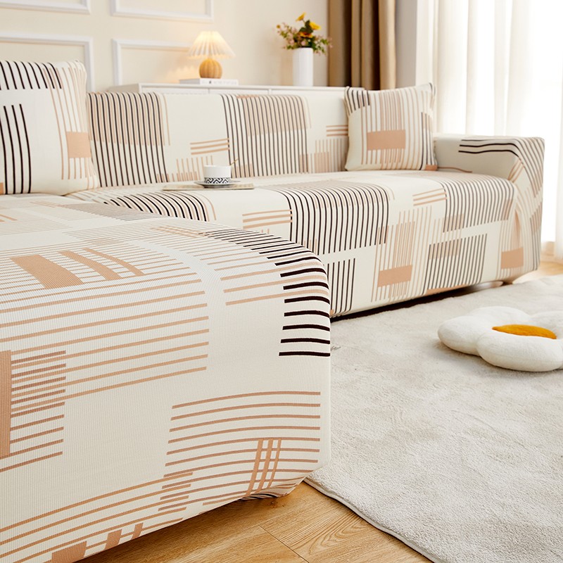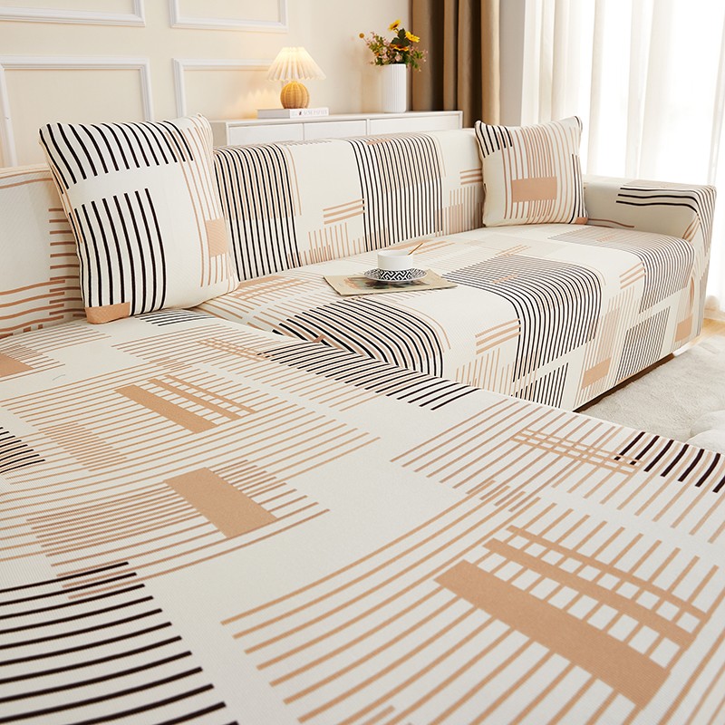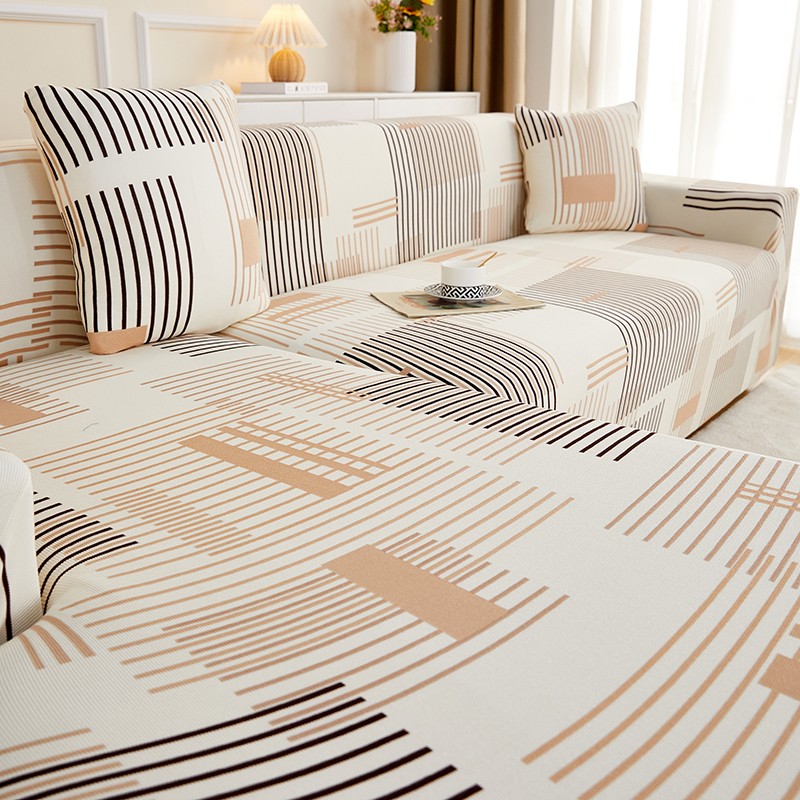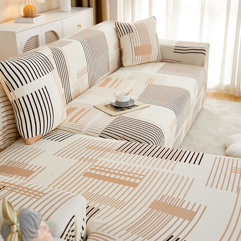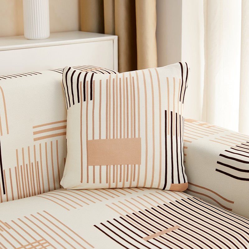 丝绮鹿2023针织柔肤格贵妃沙发套松紧款 买一个沙发套默认送一个抱枕套 简素线条-黑