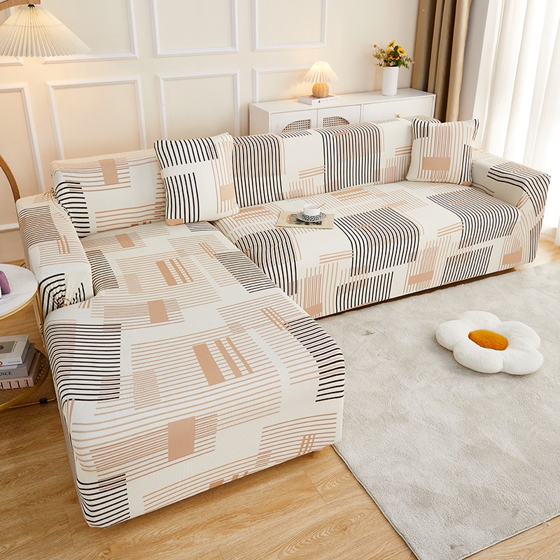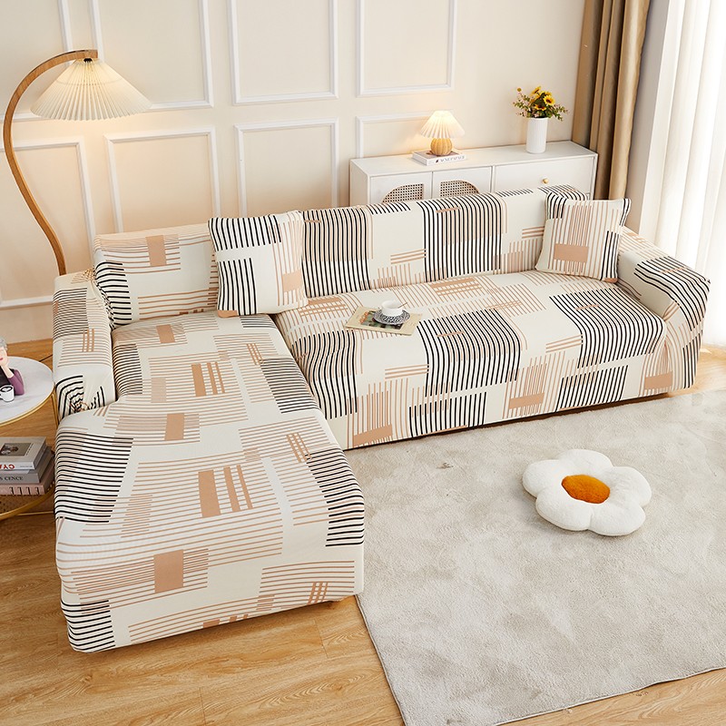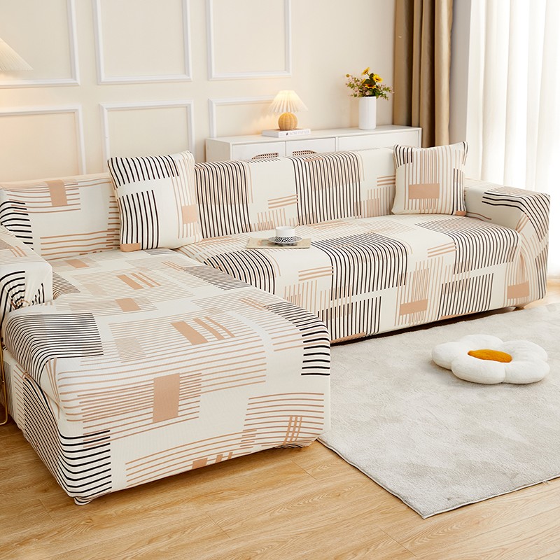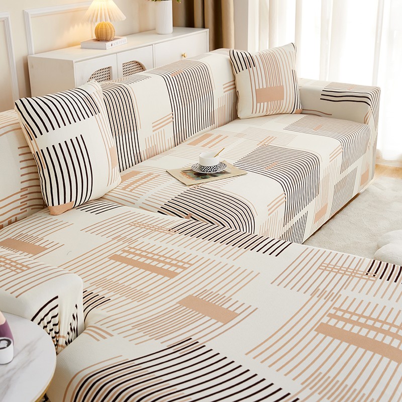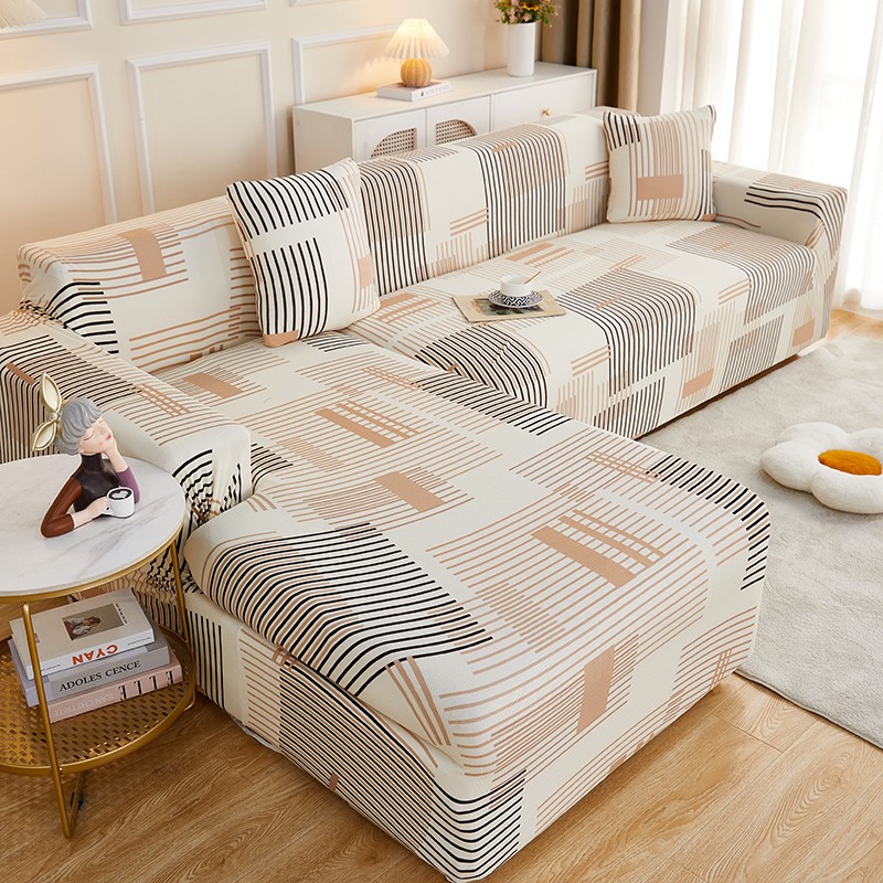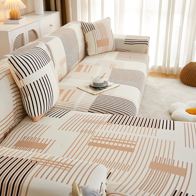丝绮鹿2023针织柔肤格贵妃沙发套松紧款 买一个沙发套默认送一个抱枕套 简素线条-黑