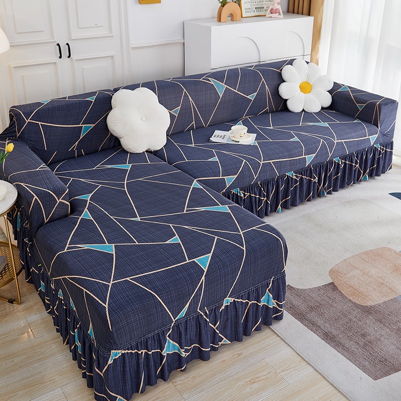 商品名称:丝绮鹿 2023新款牛奶丝沙发套贵妃图(裙边款) 时尚空间