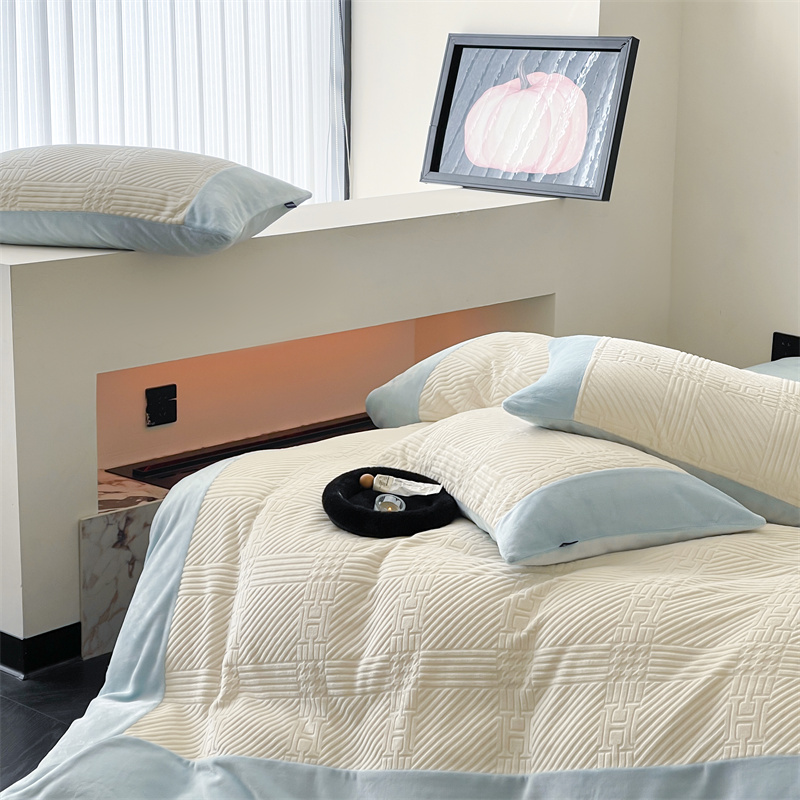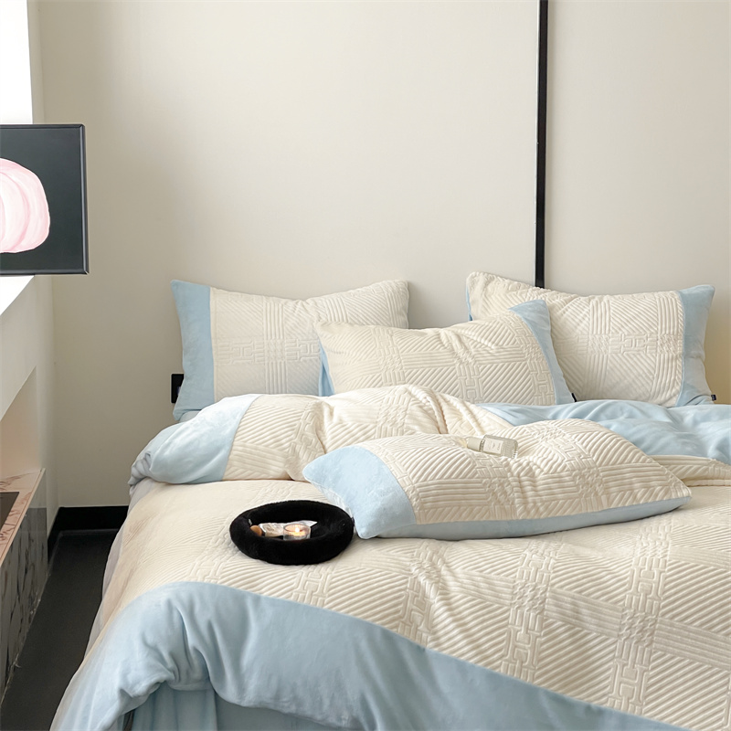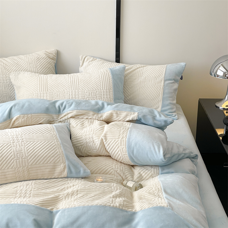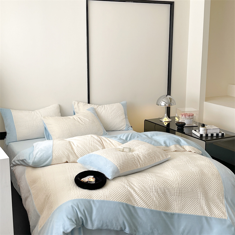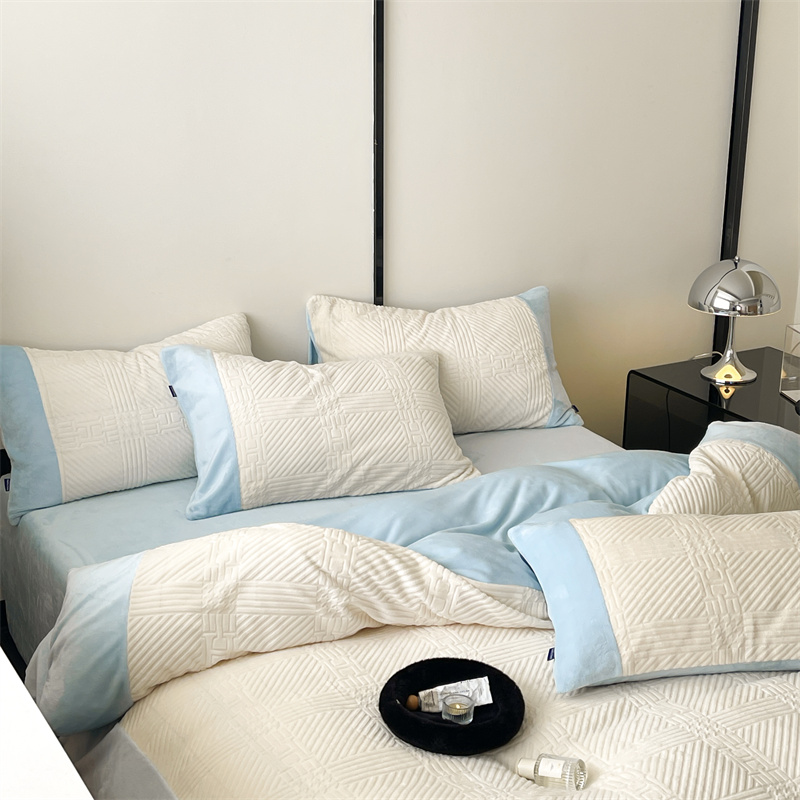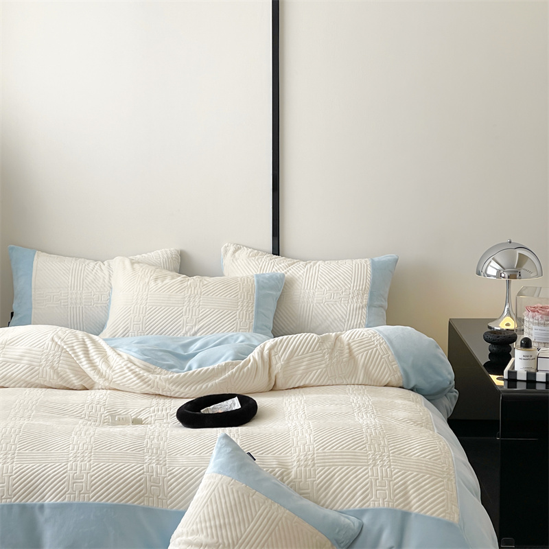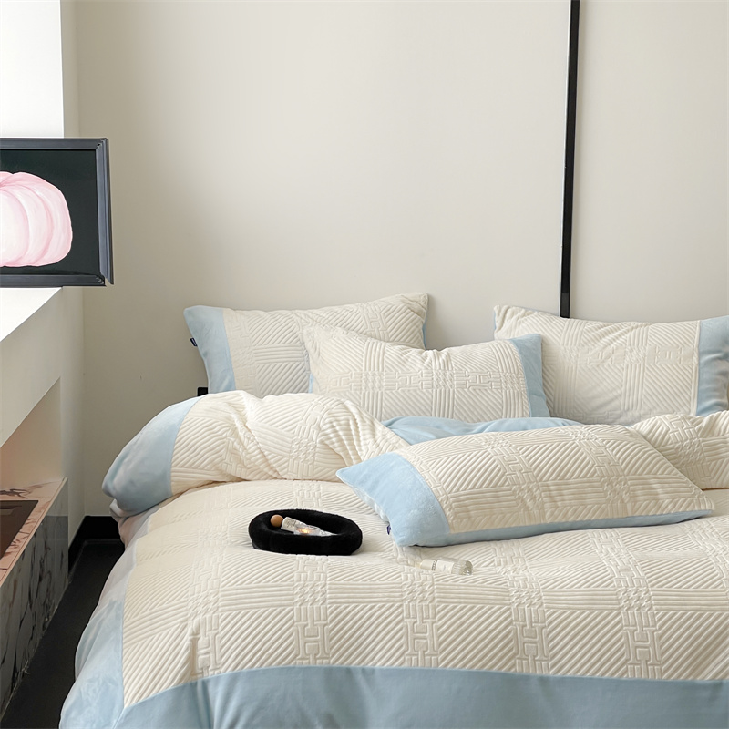 商品名称:顾里 2023新款H系列雕花绒四件套 H蓝