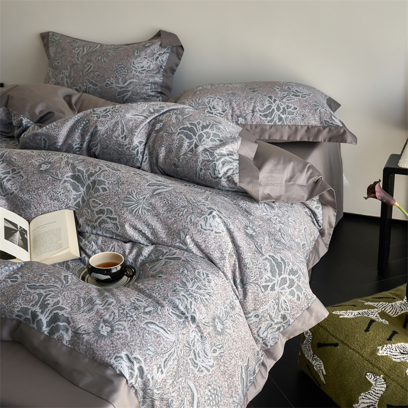 (总)鹿班家居 2026新款100S长绒棉纯棉精密刺绣系列四件套-花影摇曳(标准会员-20元),花影摇曳-粉色,花影摇曳-紫色