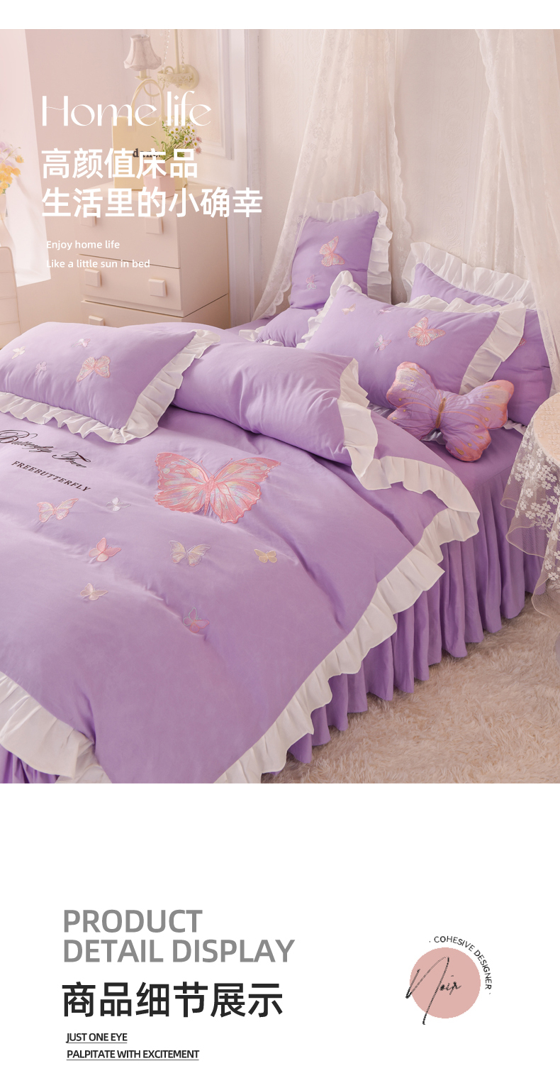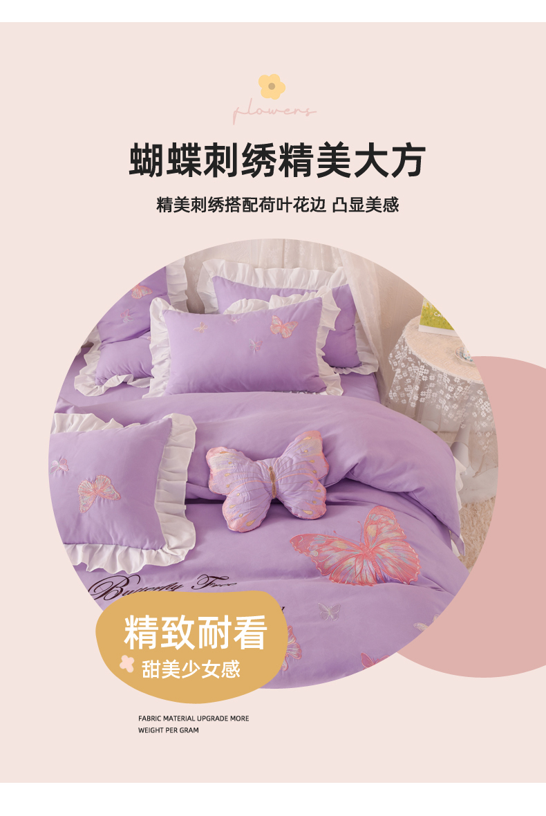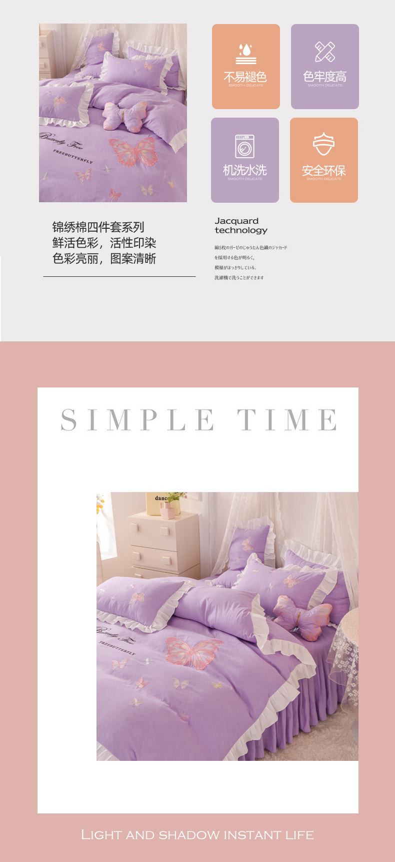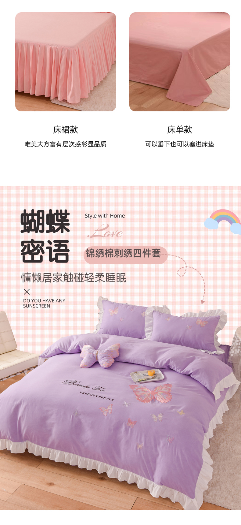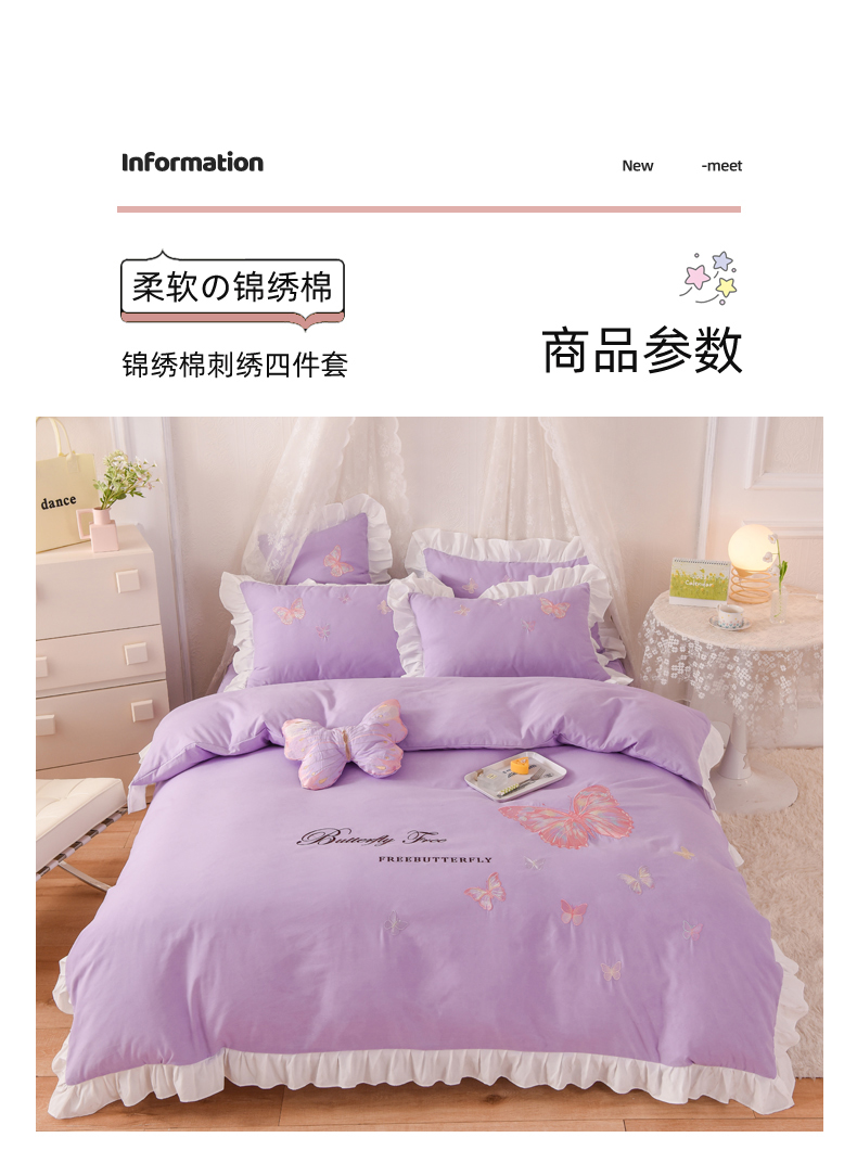 (总)绒世界 2024四季款云锦棉刺绣绣花四件套-羽蝶系列