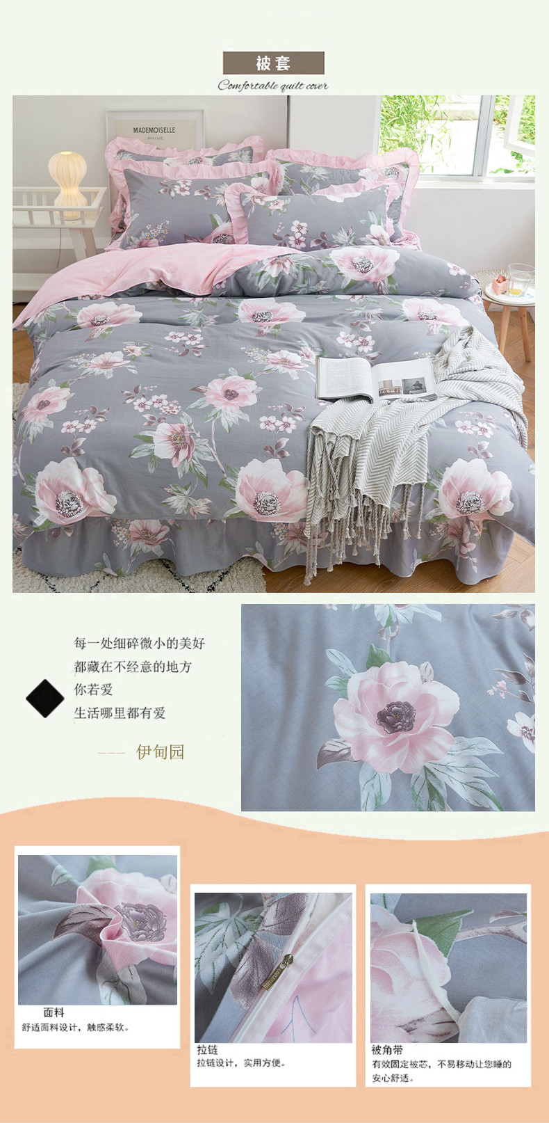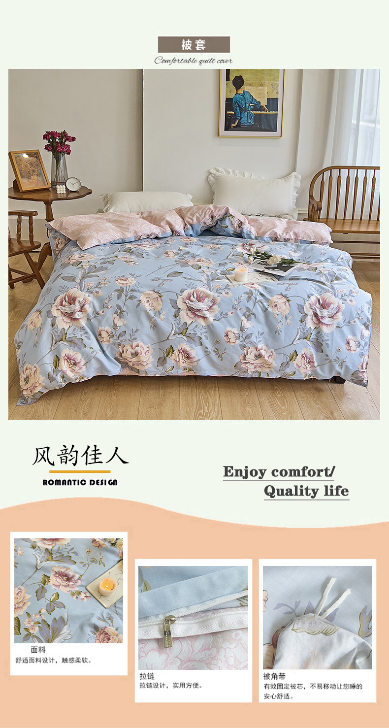 总 爱妮玖玖 2022新款全棉夹棉床盖四件套 (夹棉床单),淡香伊人,恋情,罗兰粉,罗兰蓝,若水生花,夏花,向阳花开,小清新,新叶,叶之精灵,伊甸花海,柚子,冰兔,桃花粉,紫丁香