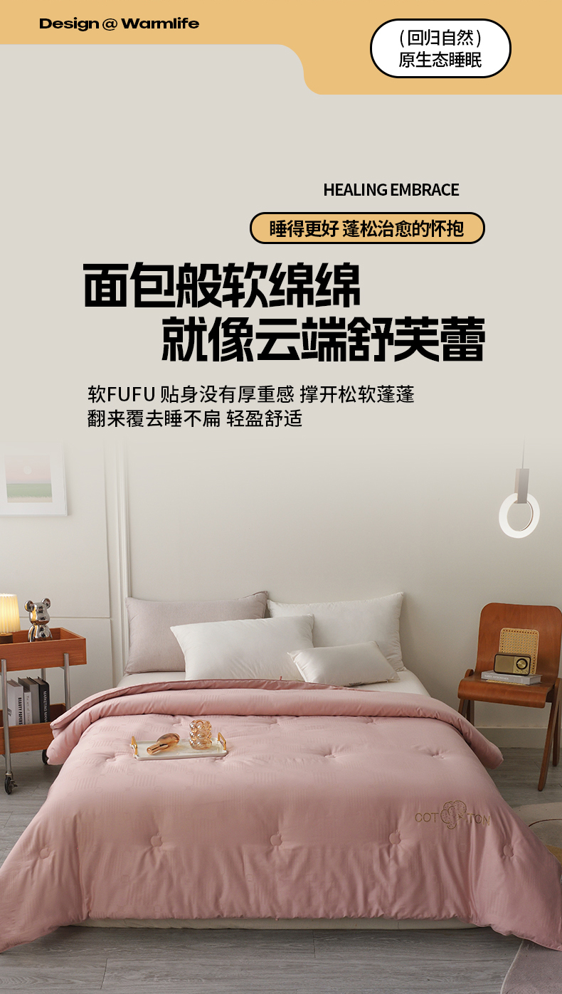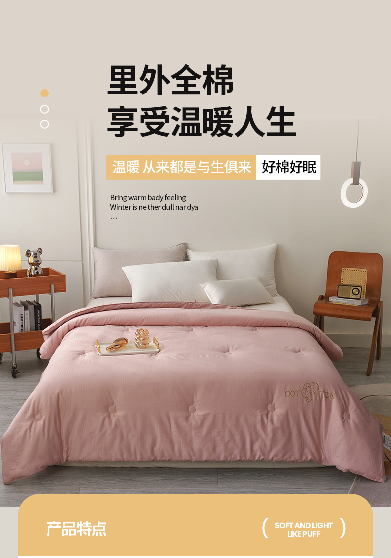 商品名称:博尔菲 新款全棉小提花新疆棉花被 深情告白-豆沙
