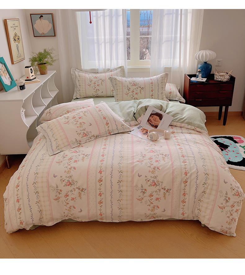 盛馨 2024全棉高支高密精梳棉小清新碎花四件套纯棉床笠三件套 春苑