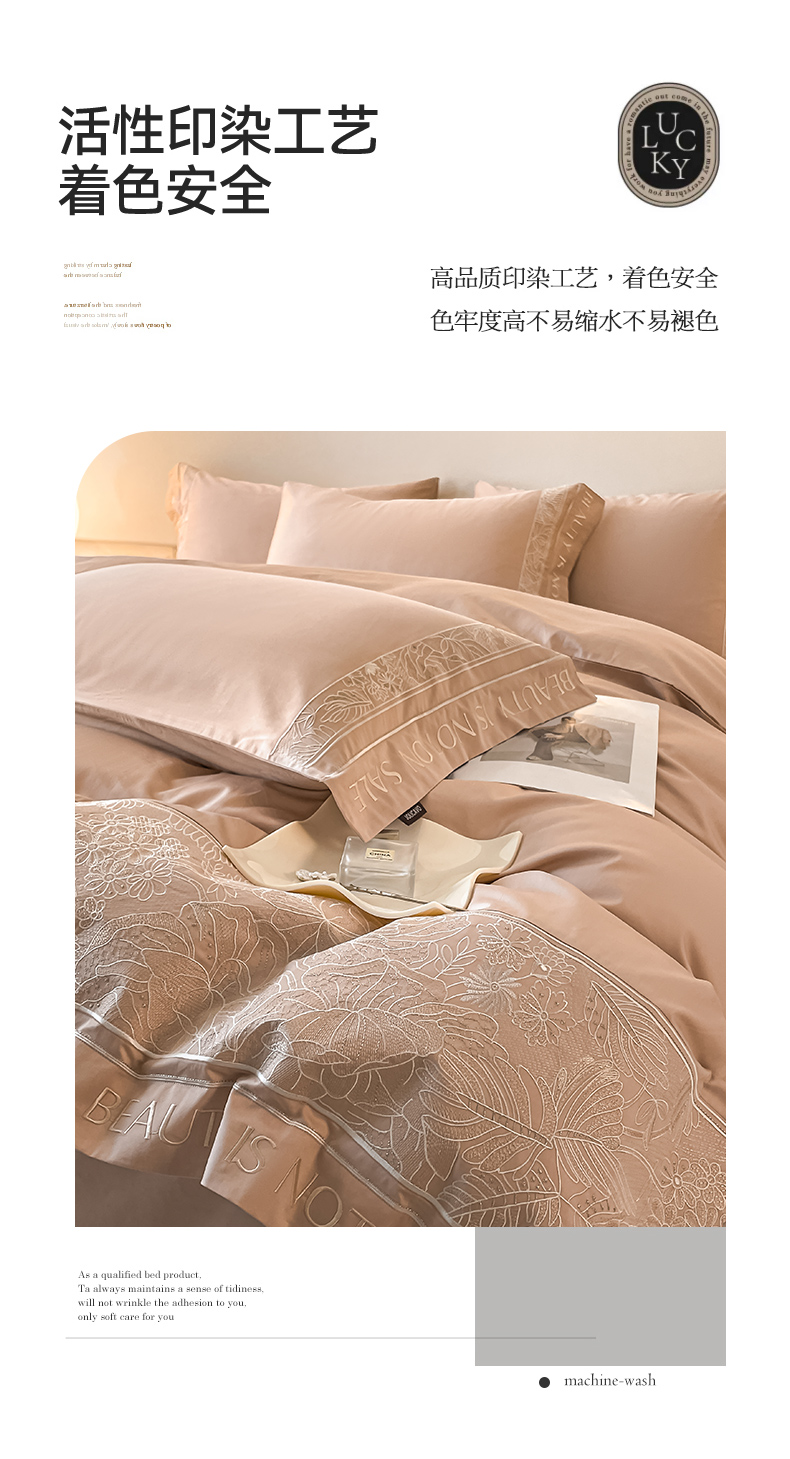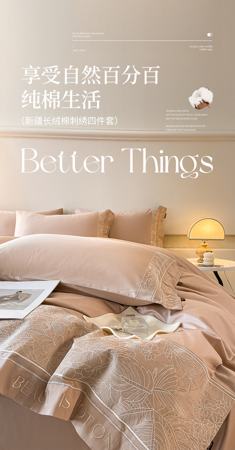 当前位置: 91家纺网 > 商品网购 > 床品套件 > 四件套 > 长绒棉四件套 > 【2024春夏爆款】100支长绒棉四件套全棉纯棉轻奢风重工刺绣纯色床单被套酒店风床上用品 清悦-美拉德