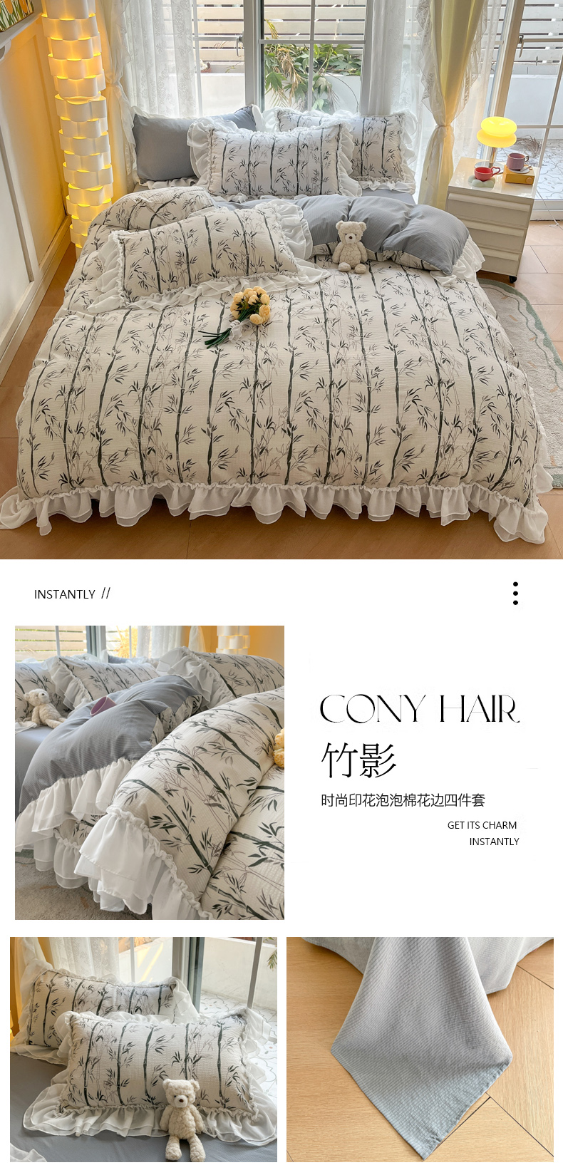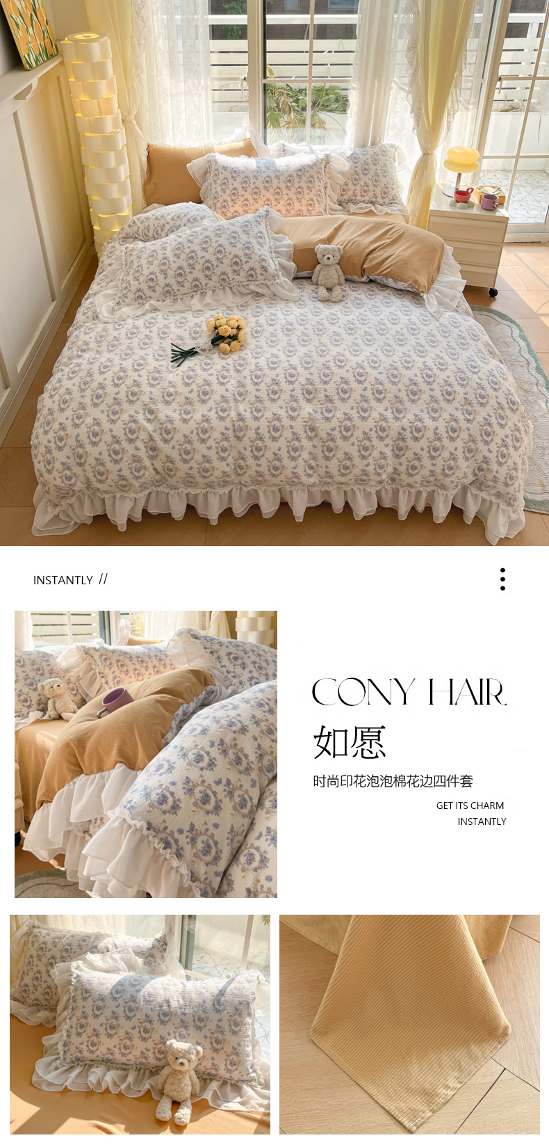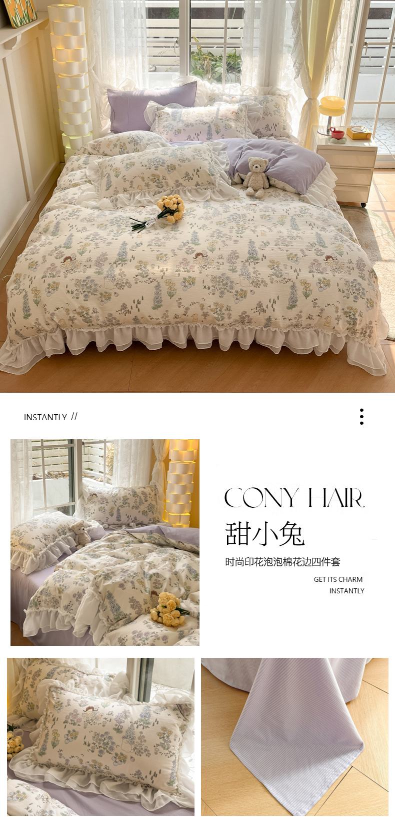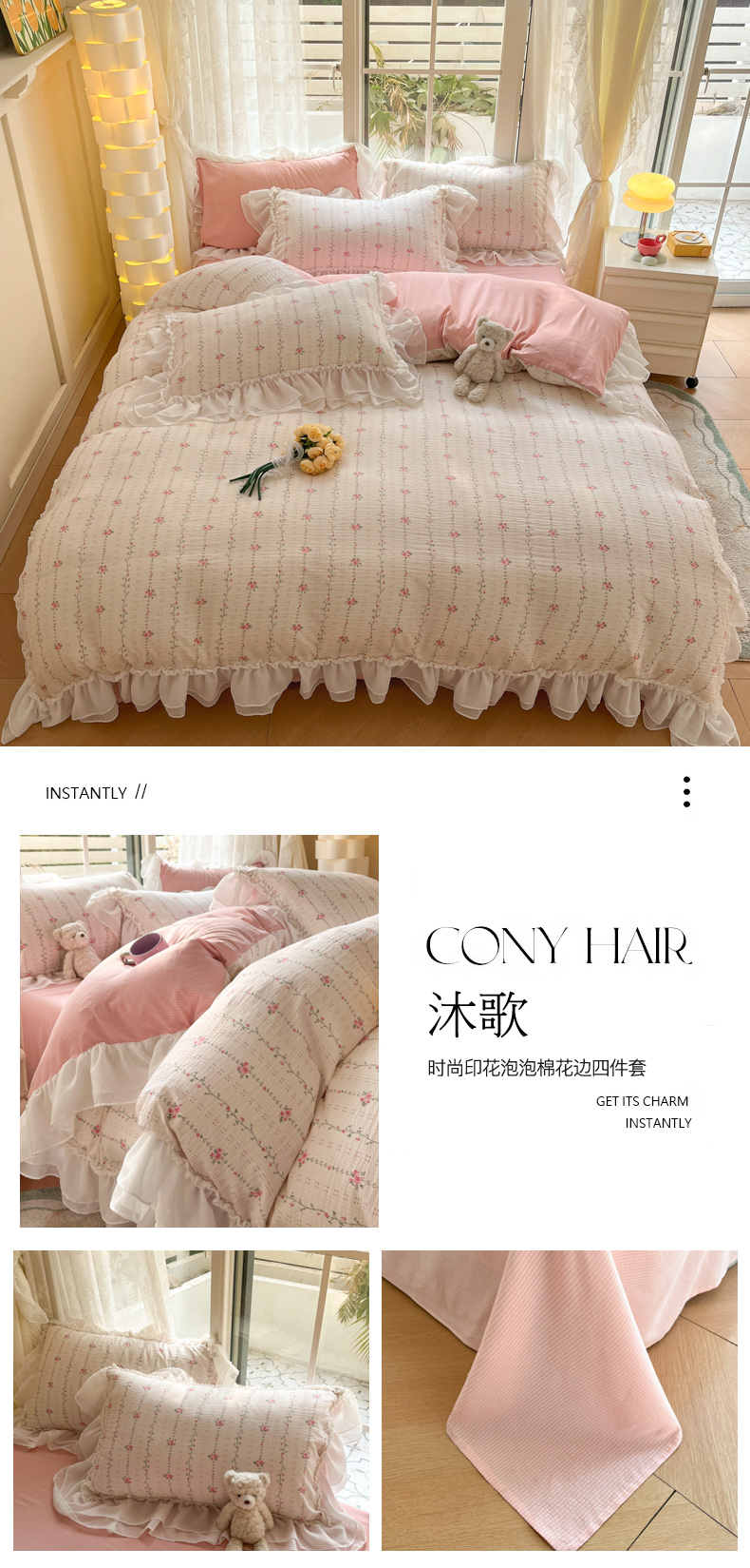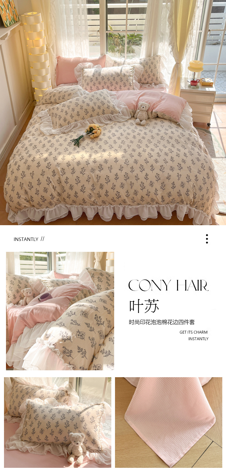(总)慕澄 2024新款时尚印花泡泡棉花边四件套