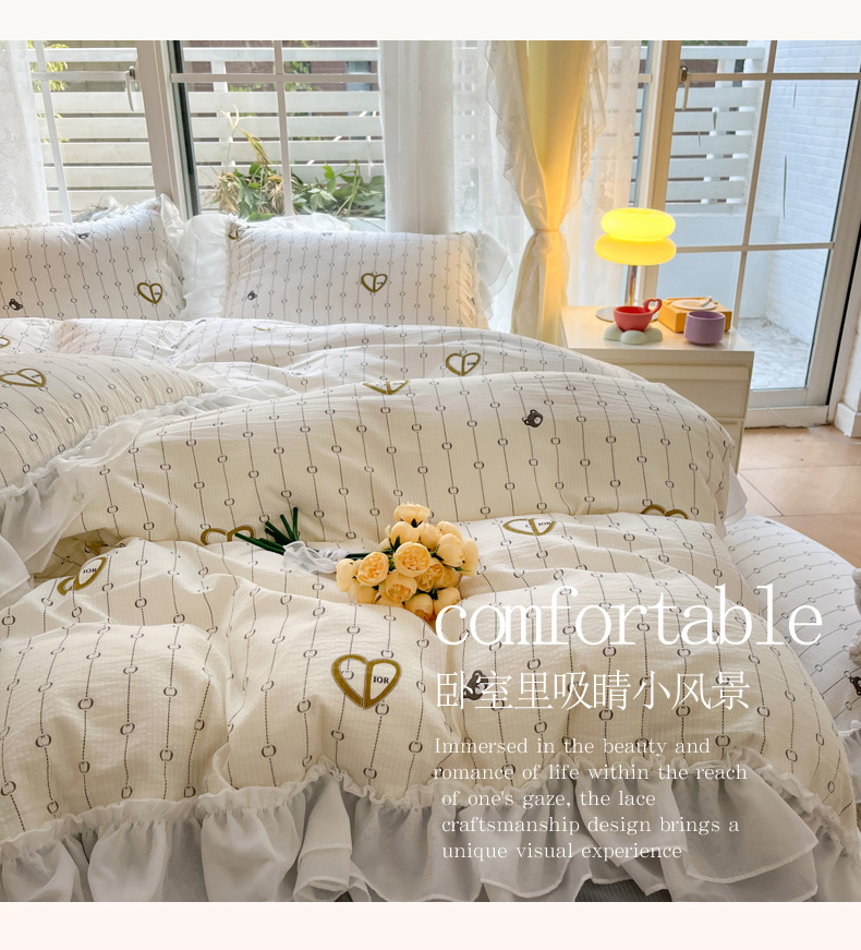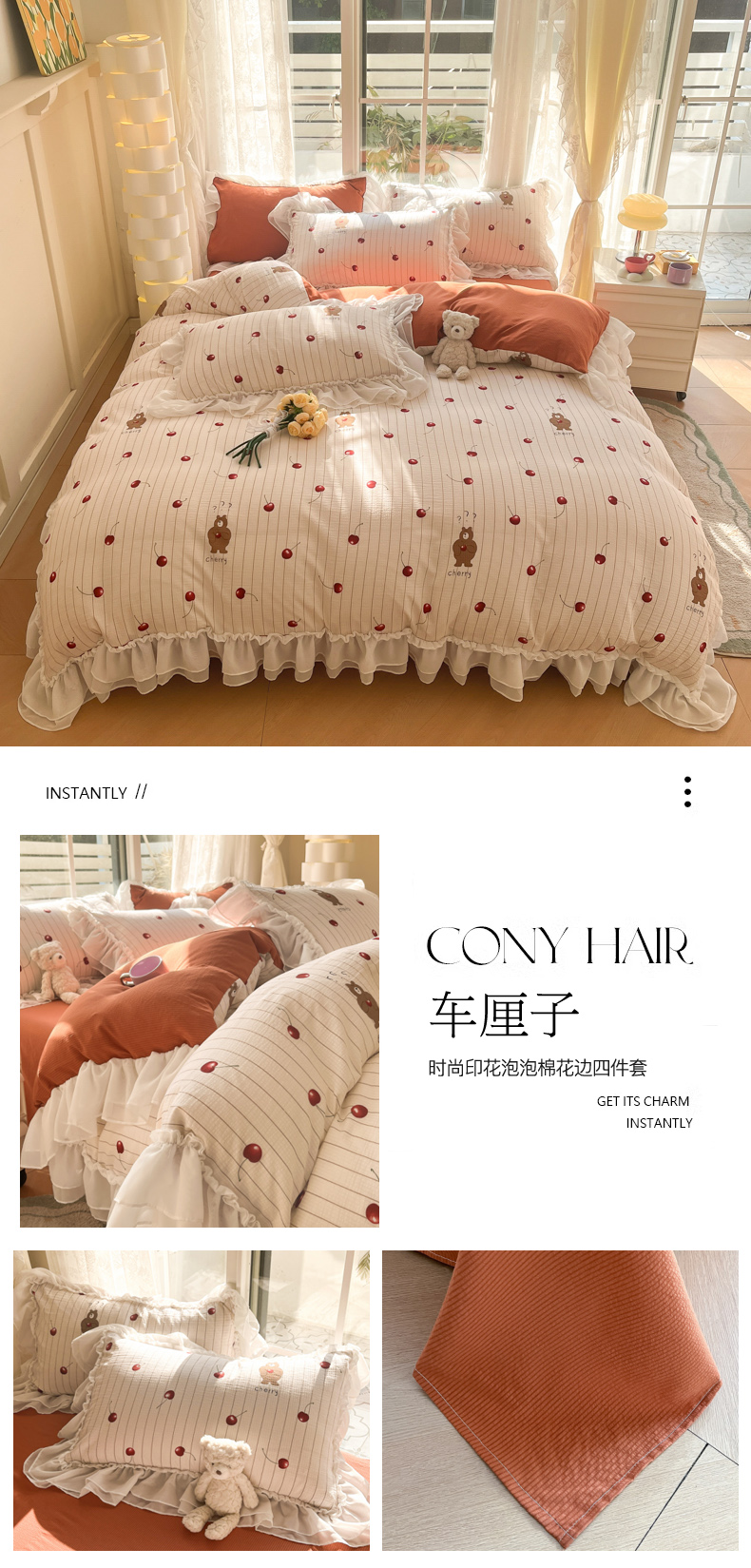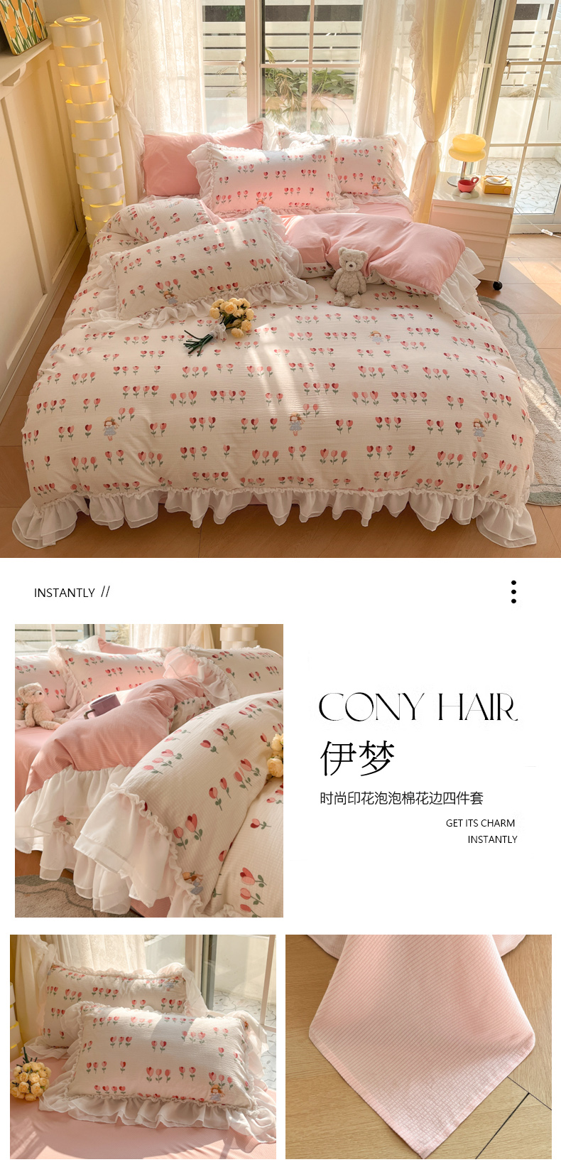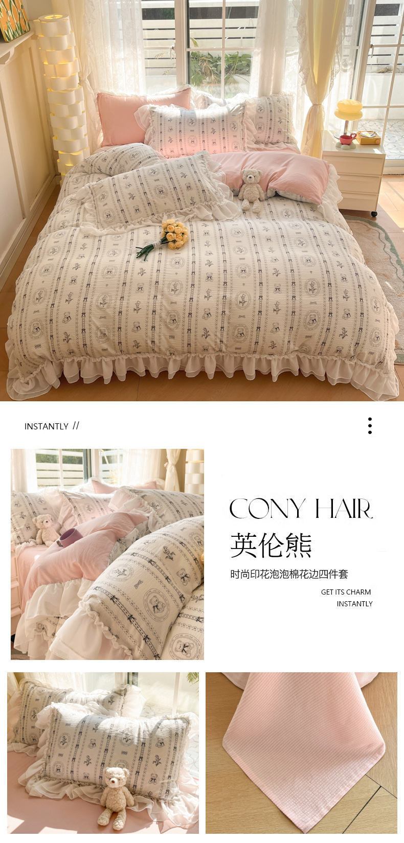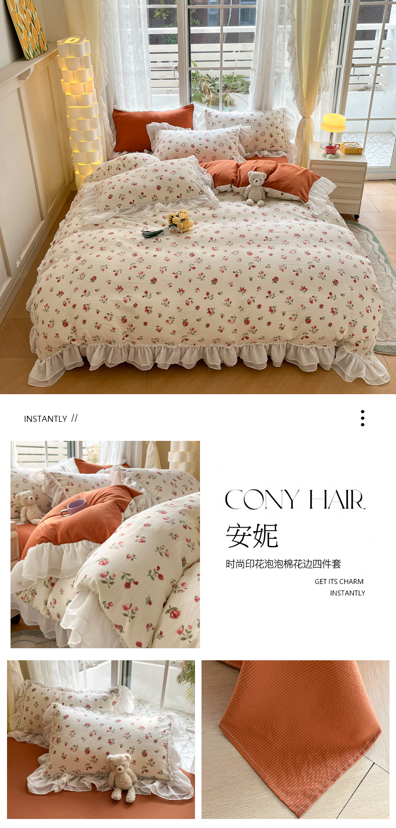 (总)慕澄 2024新款时尚印花泡泡棉花边四件套