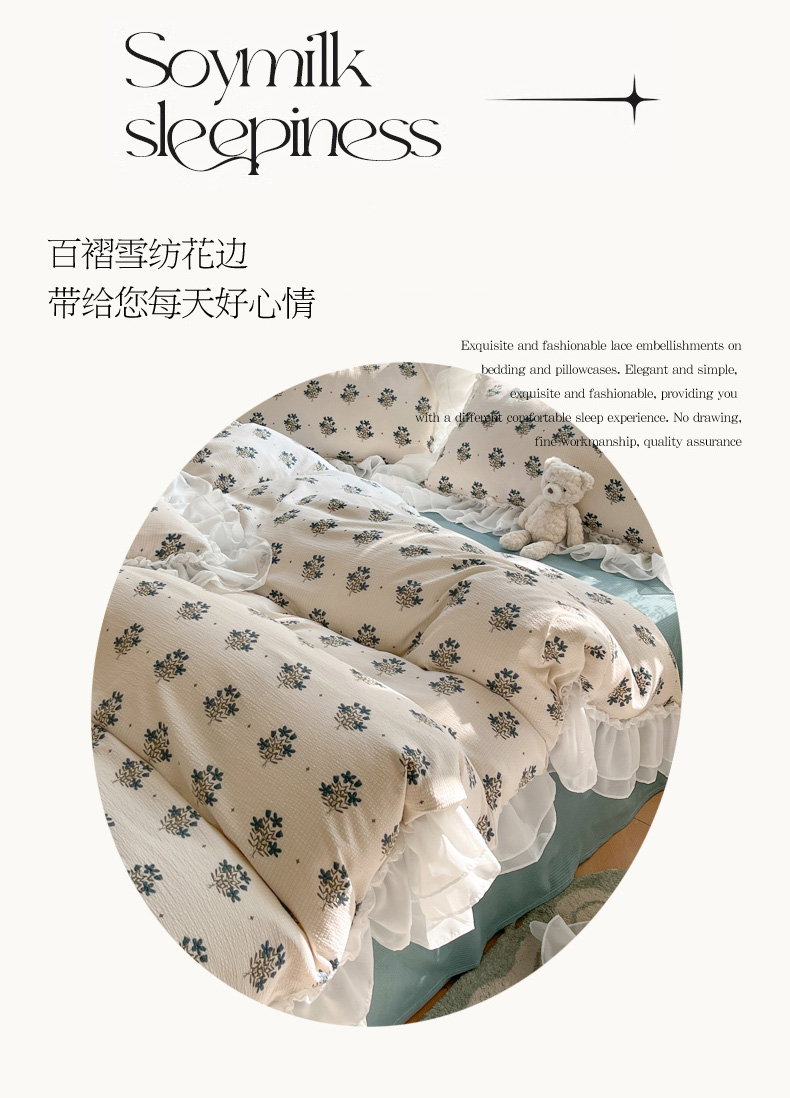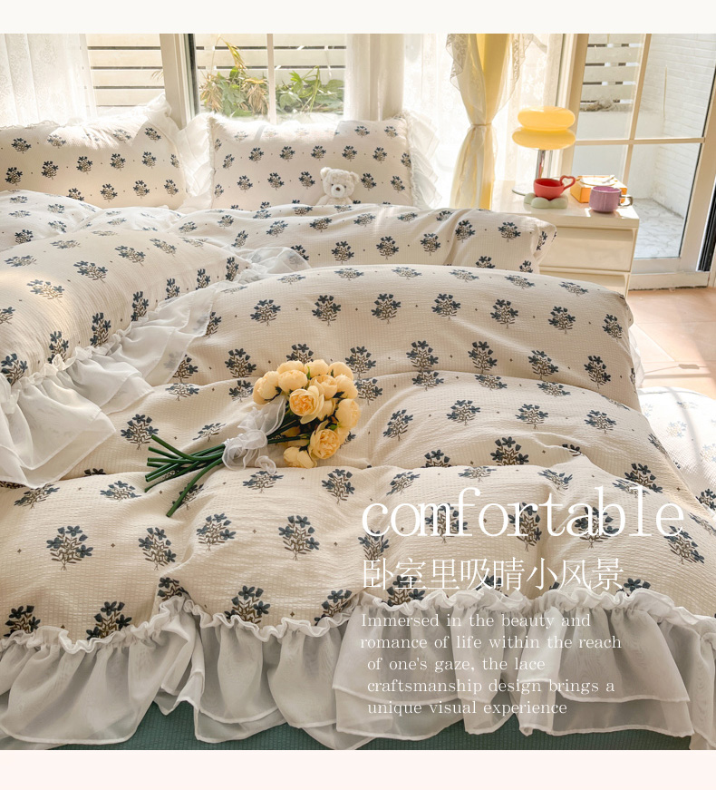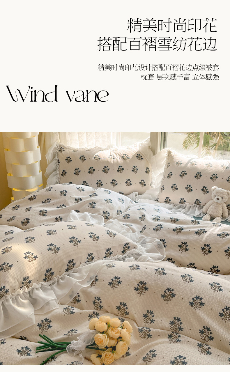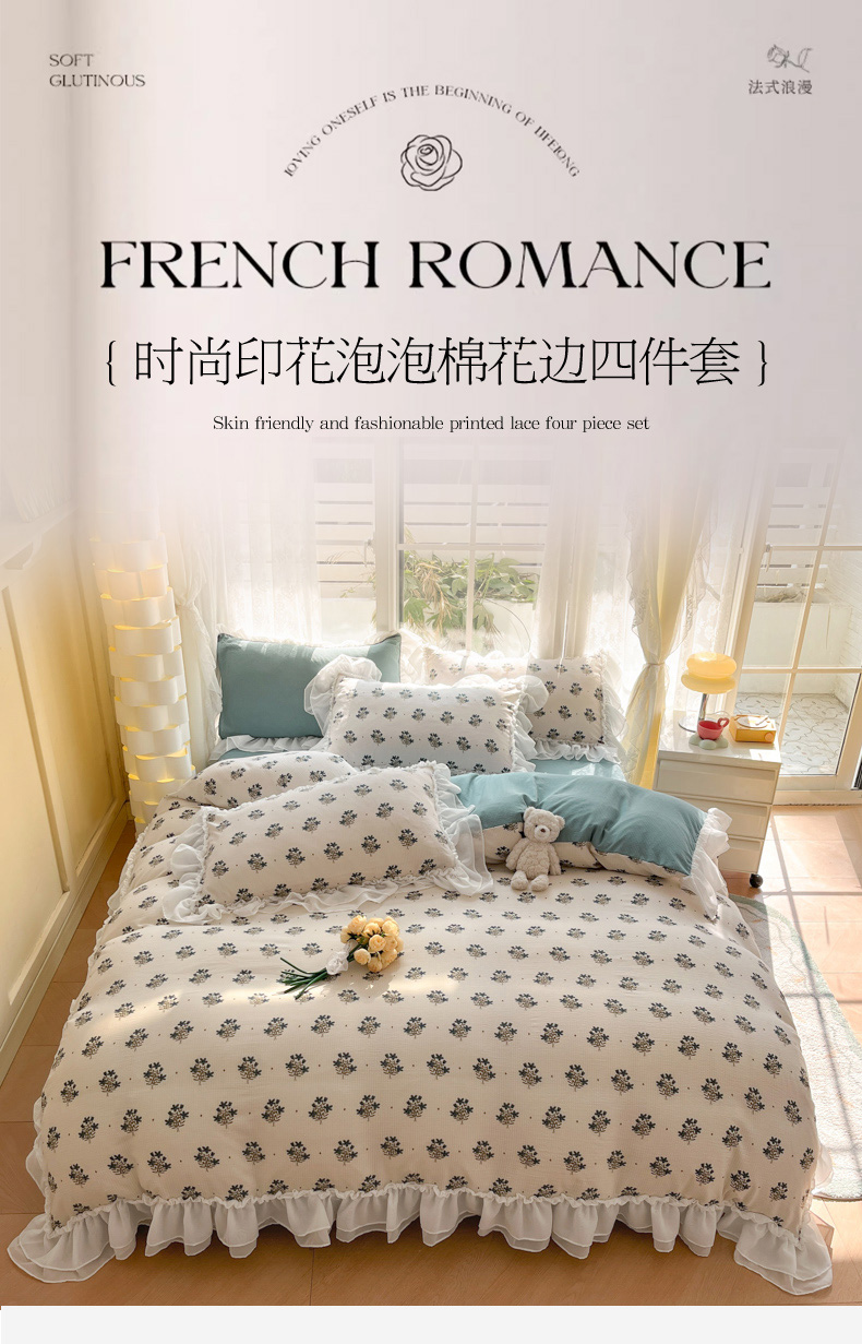 商品名称:慕澄 2024新款时尚印花泡泡棉花边四件套 晴朗