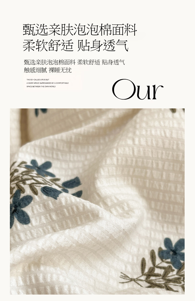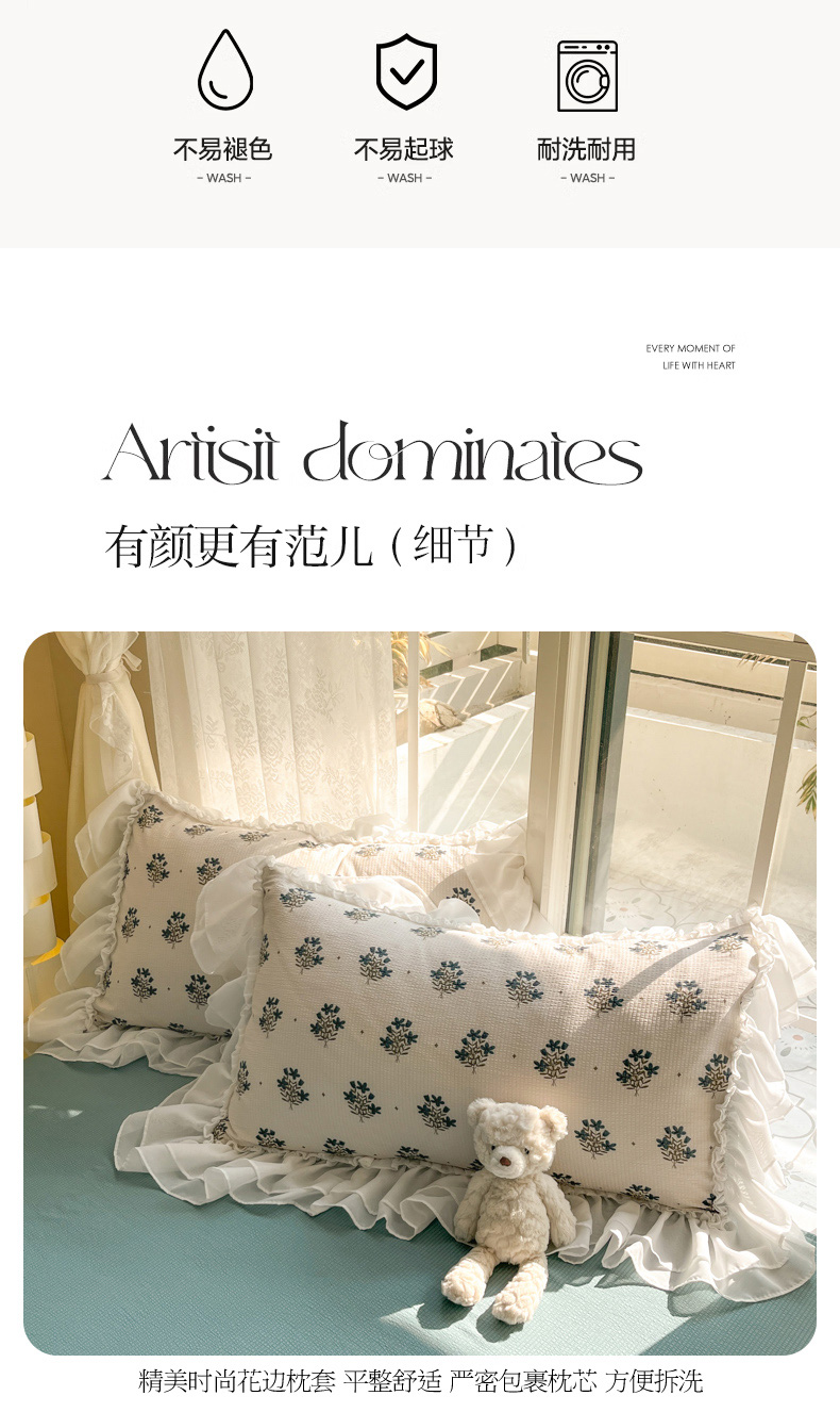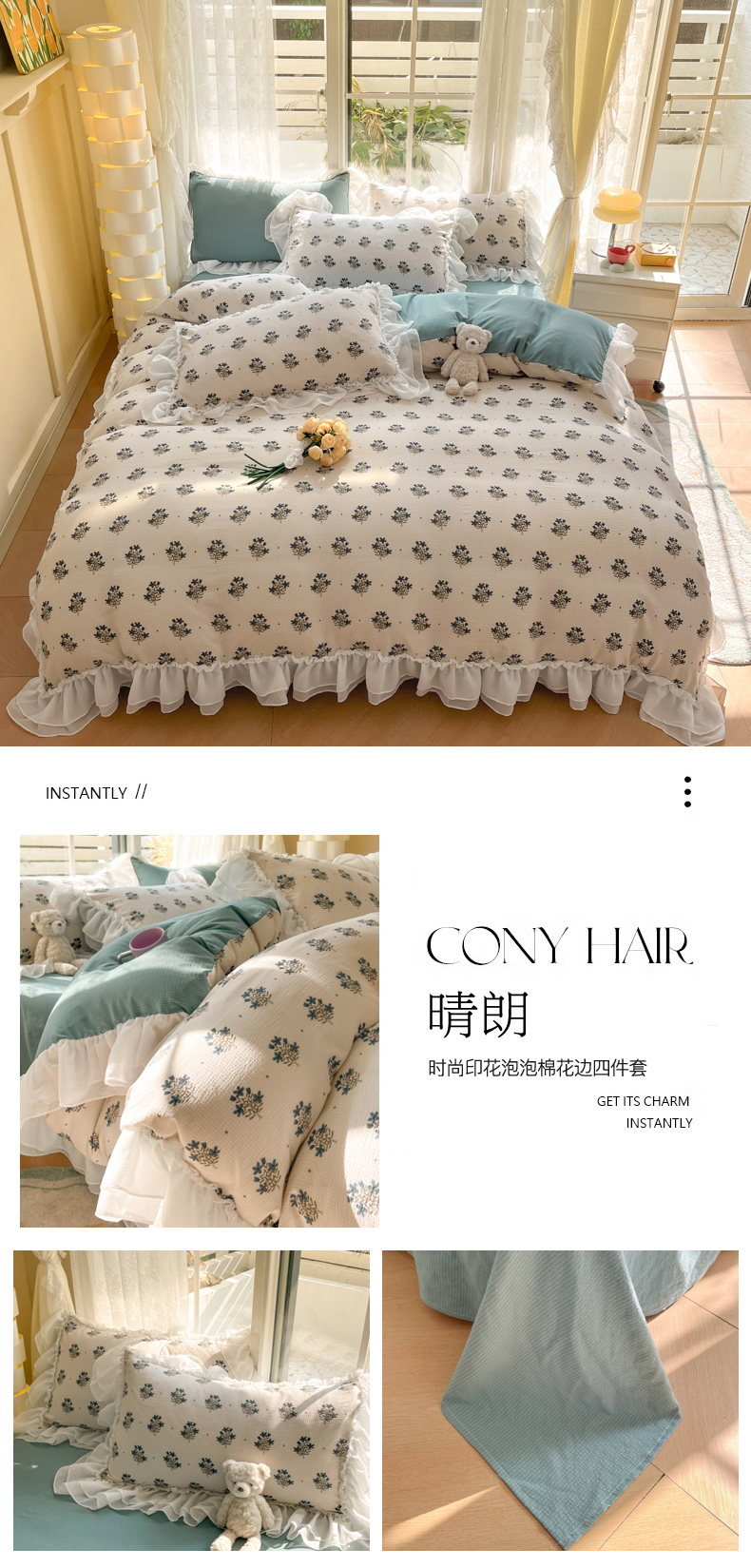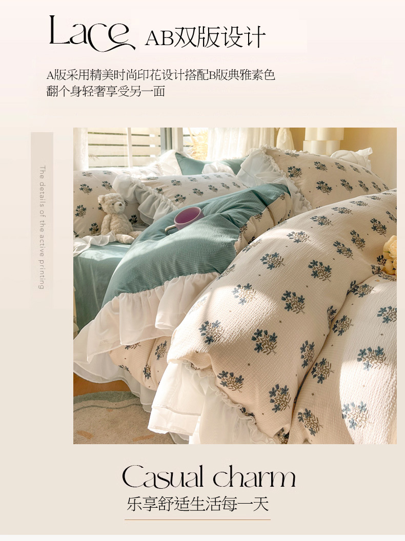 商品名称:慕澄 2024新款时尚印花泡泡棉花边四件套 晴朗