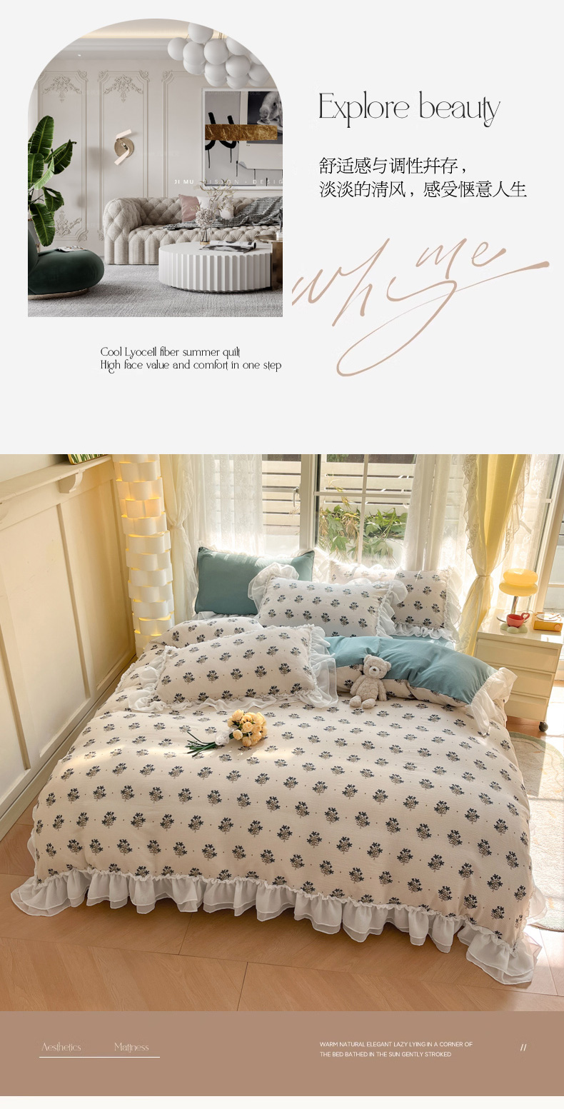 慕澄家纺 2024新款时尚印花泡泡棉花边夏被夏凉被空调被 夏被-如愿,夏被-如愿