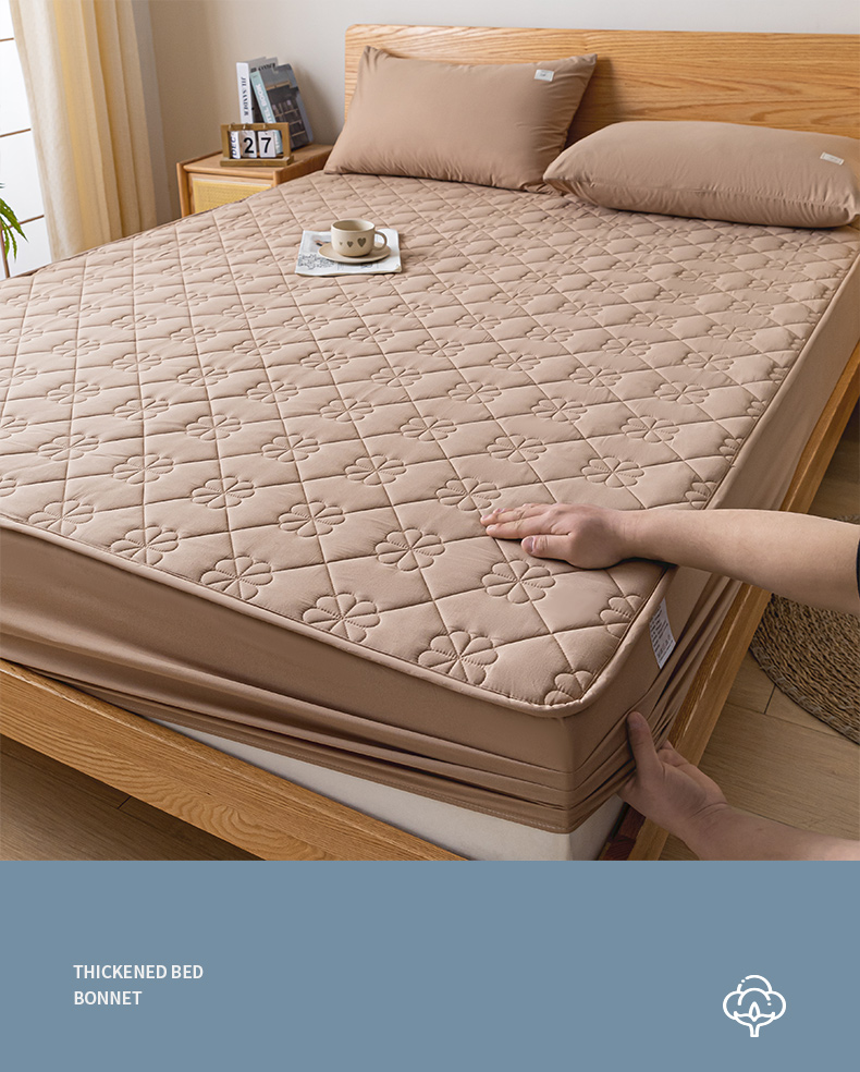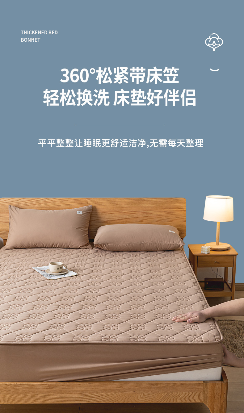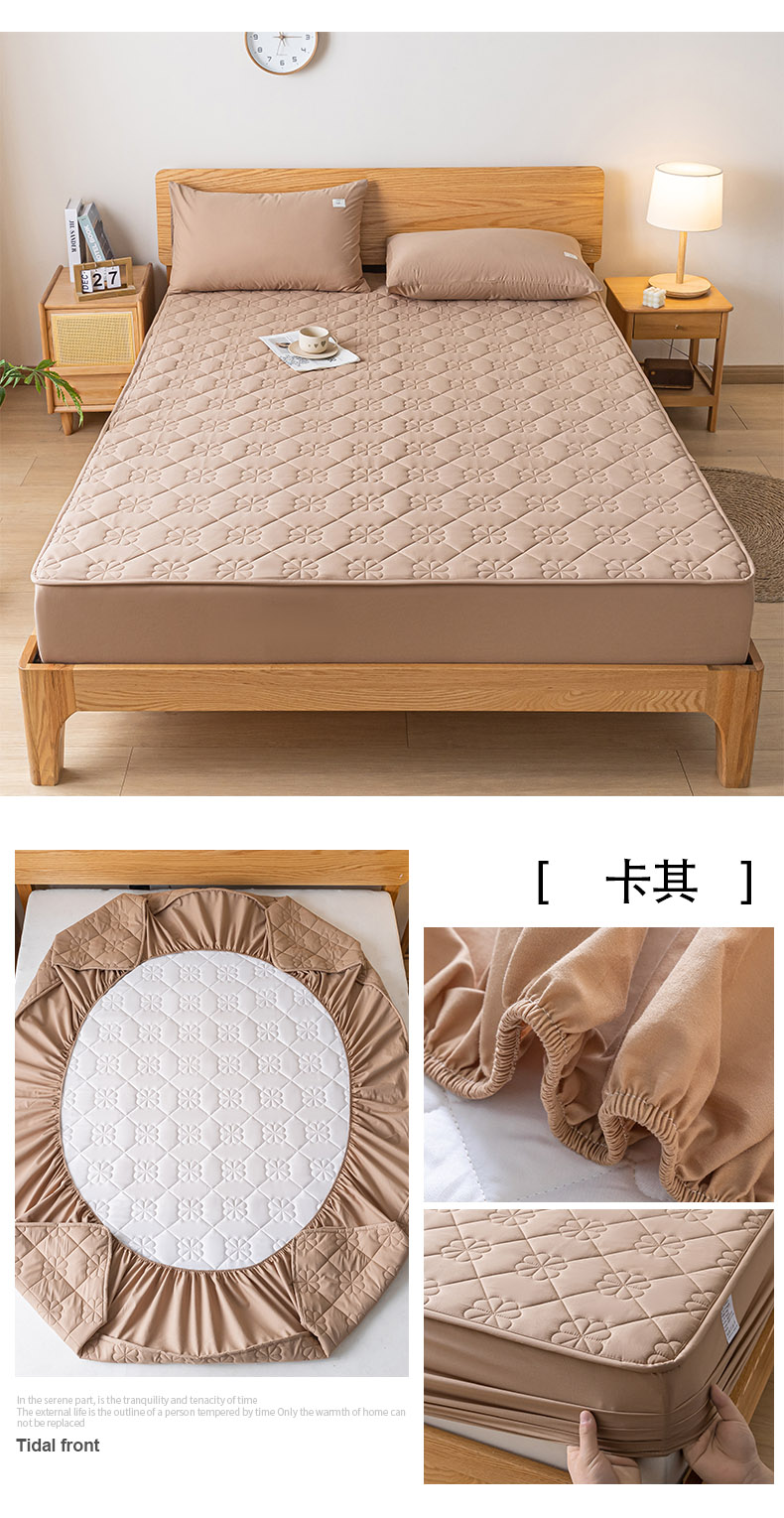 商品名称:ab家纺 2024新款40支全棉纯色夹棉床笠 卡其