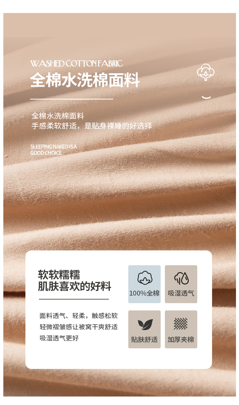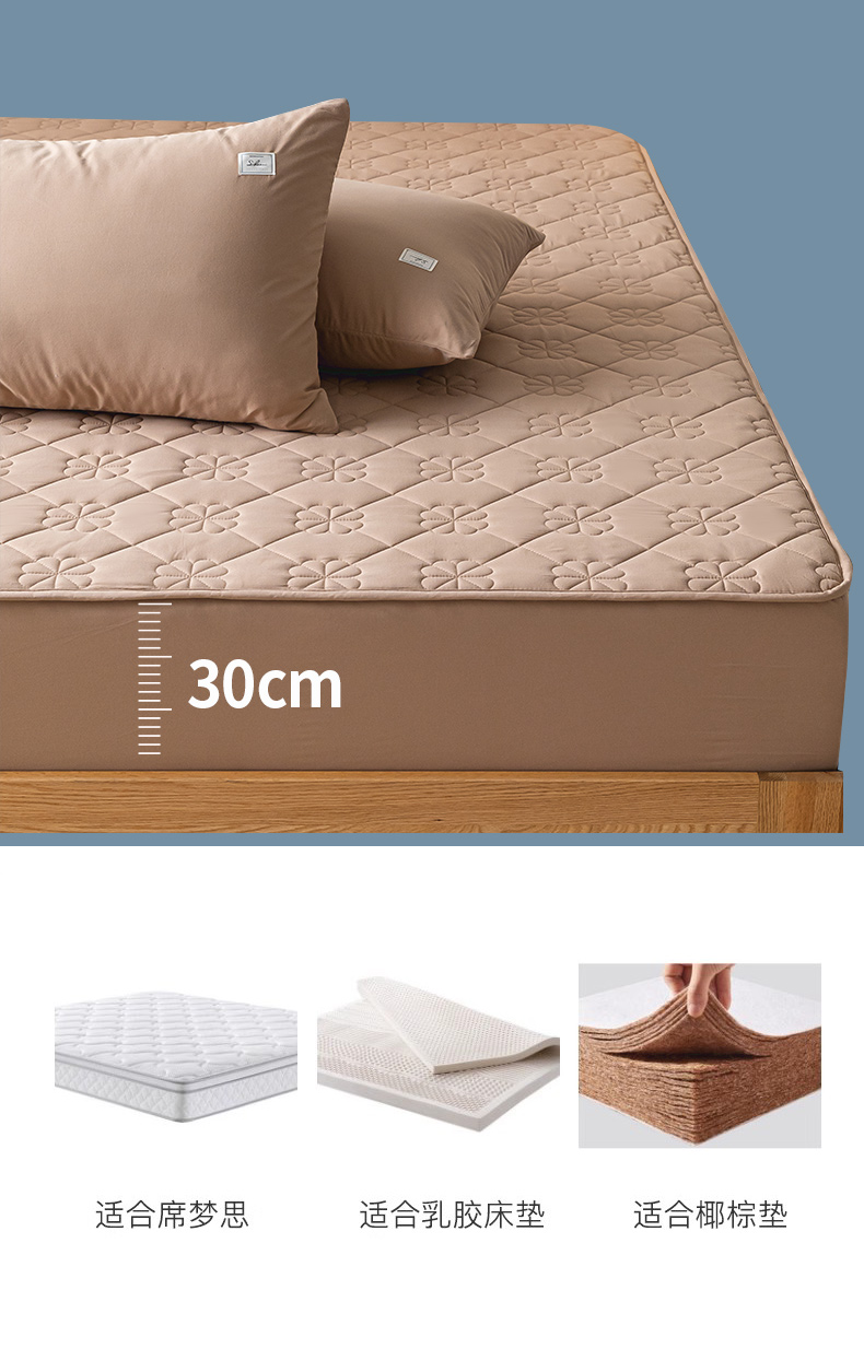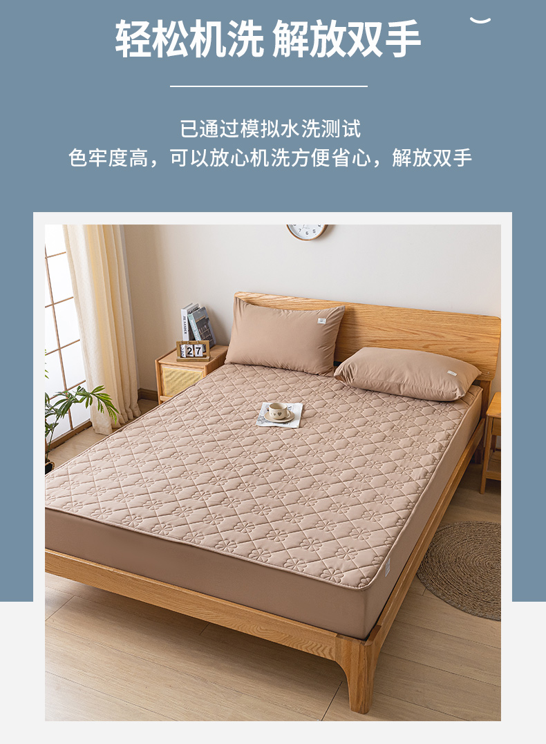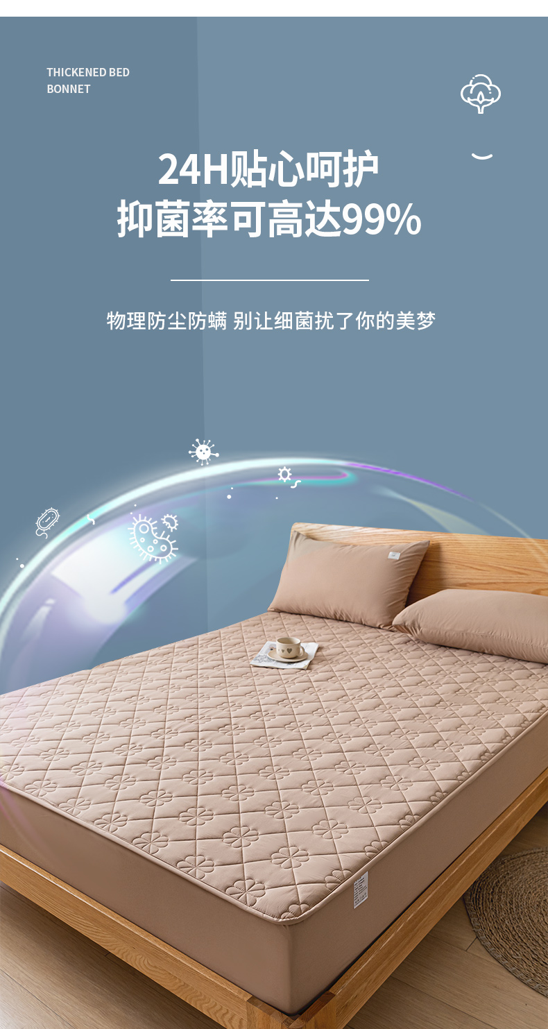 商品名称:ab家纺 2024新款40支全棉纯色夹棉床笠 卡其