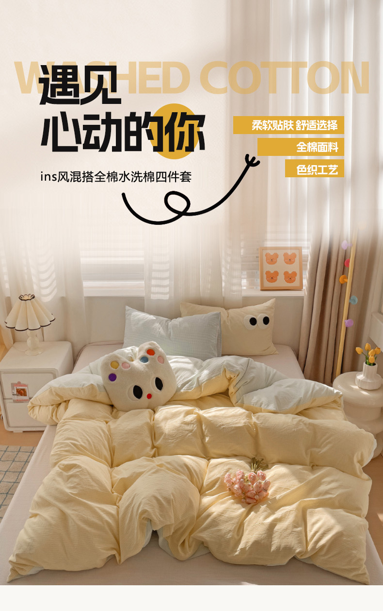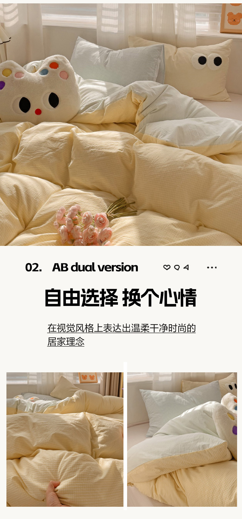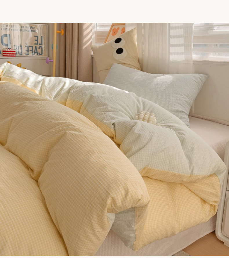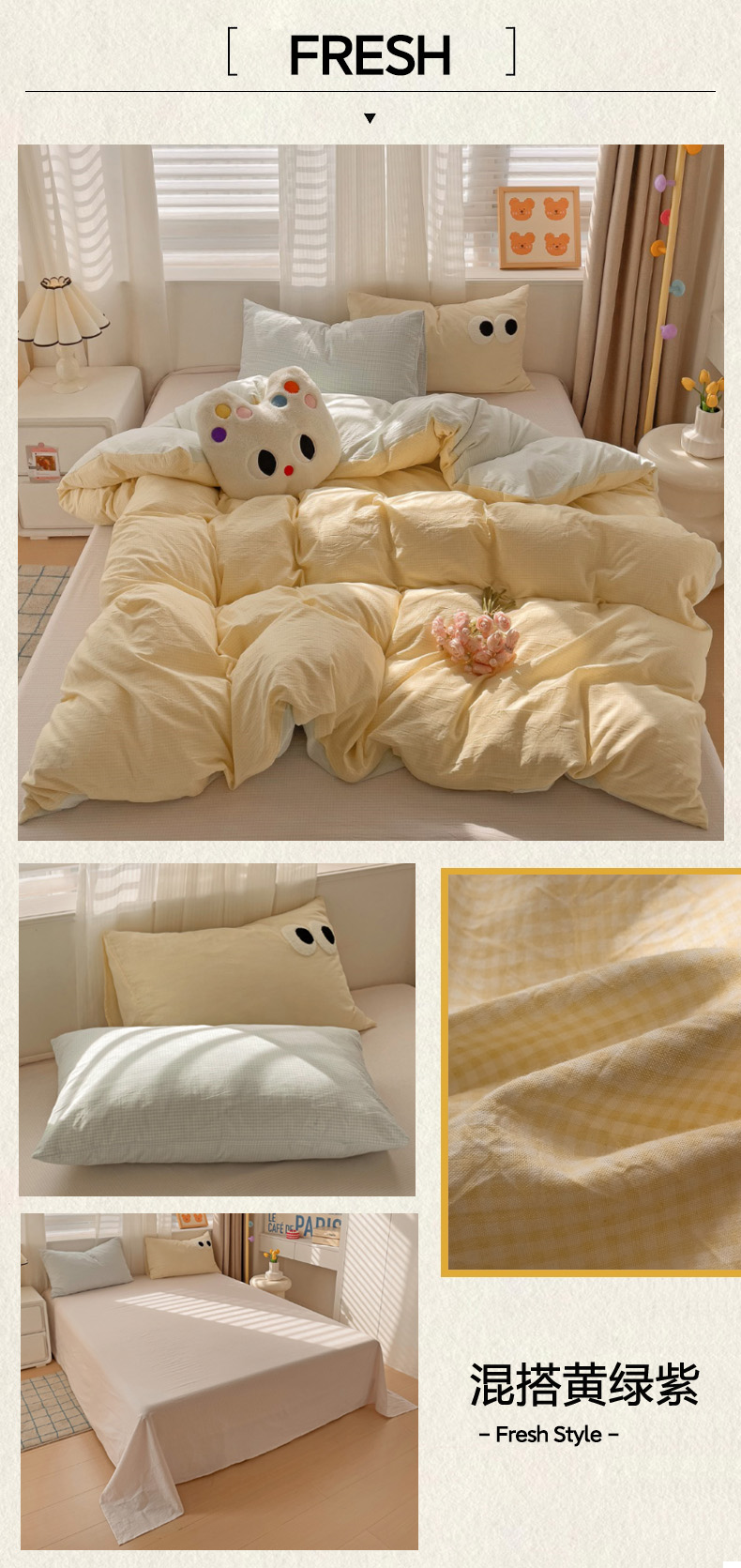 当前位置: 91家纺网 > 商品网购 > 床品套件 > 四件套 > 水洗棉四件套 > 丽涵家纺 2024新款ins风混搭水洗棉全棉毛巾绣系列格子四件套 混搭黄绿紫