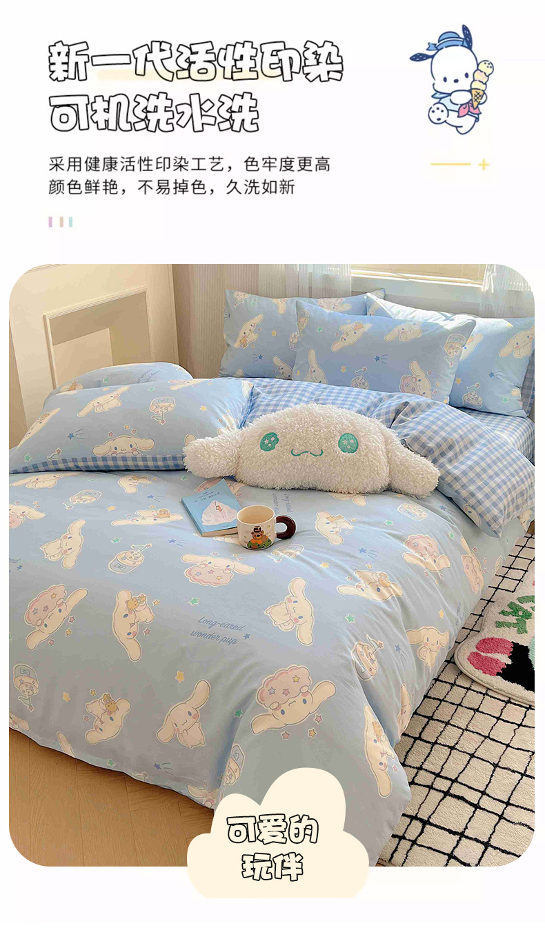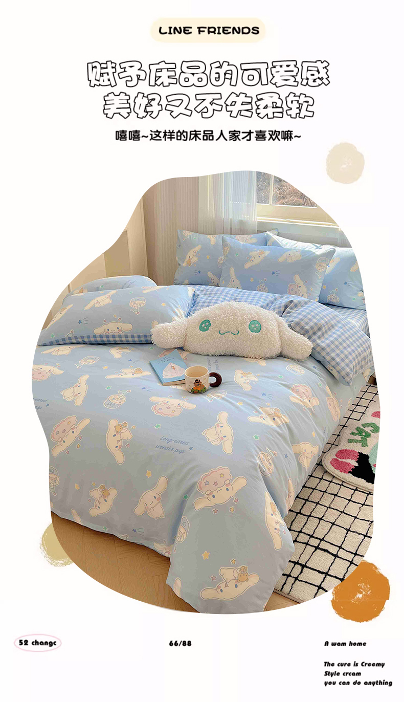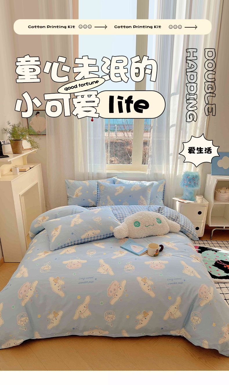 商品名称:星座家纺 2025新款40s全棉卡通印花四件套 星星玉桂狗