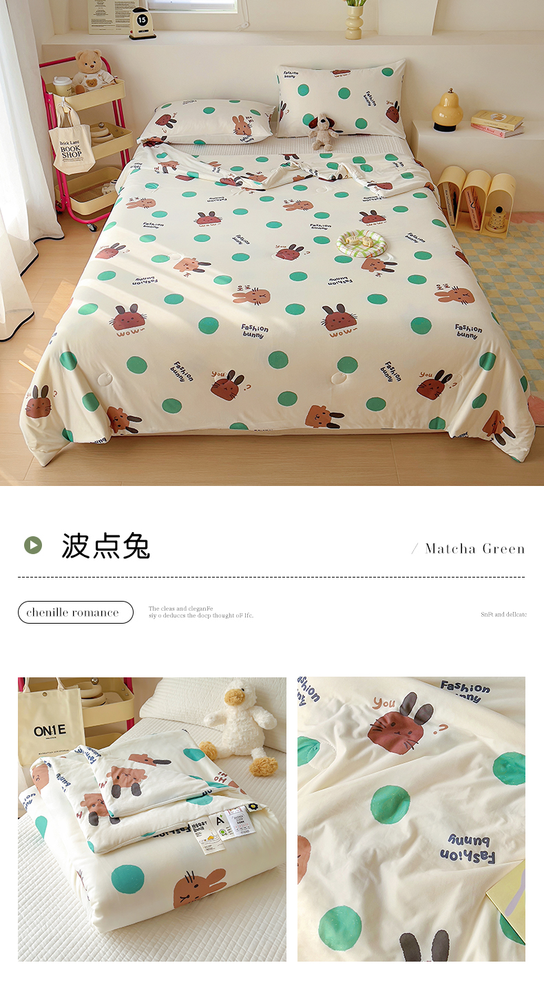 商品名称:木堇家居 2024新款10%大豆纤维针织棉夏被 波点兔