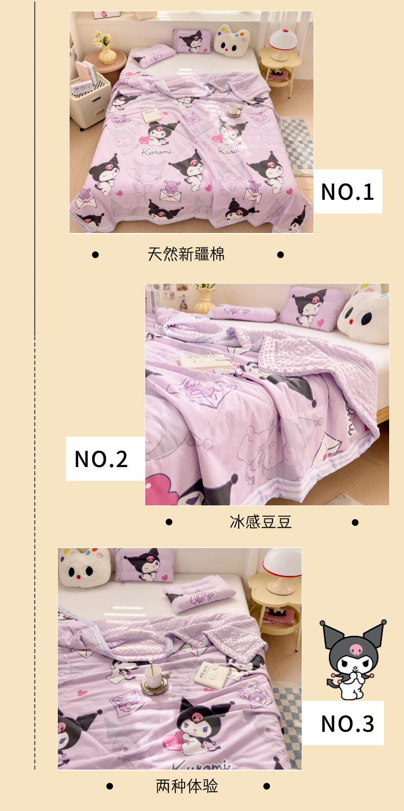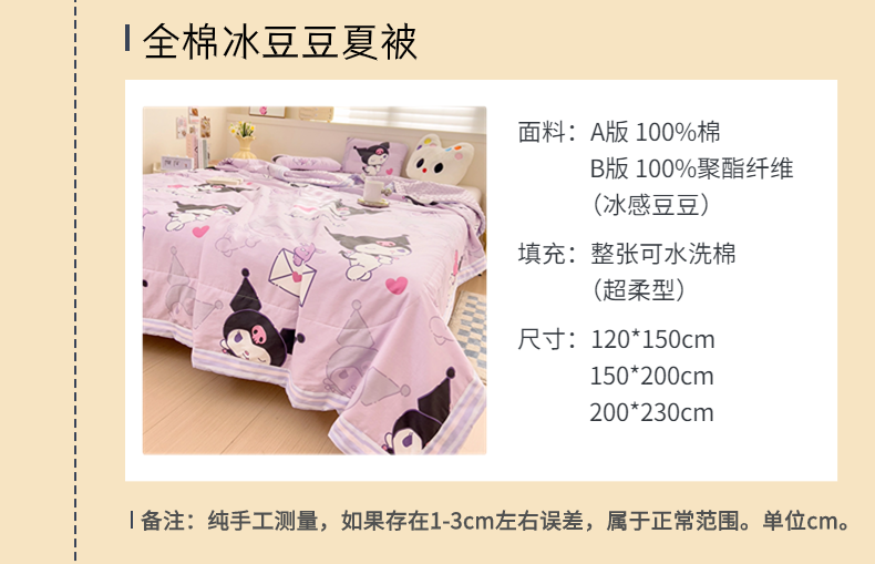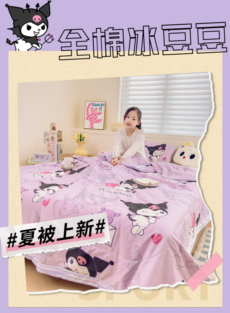 商品名称:十九色 2025新款酷洛米系列全尺寸全棉13372凉豆豆夏被 紫色酷洛米