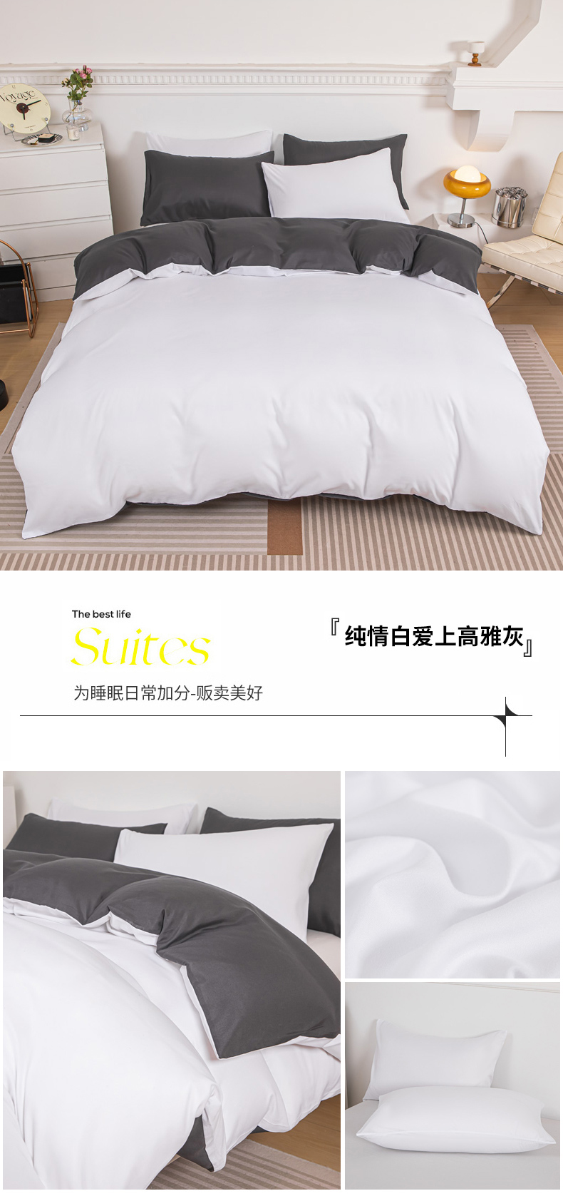 商品名称:莎臣豹 2025新款水洗棉磨毛纯色双拼简约风撞色单品被套 纯情白爱上高雅灰