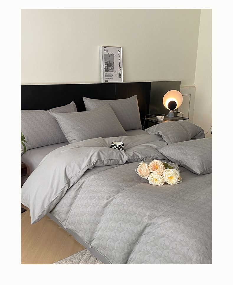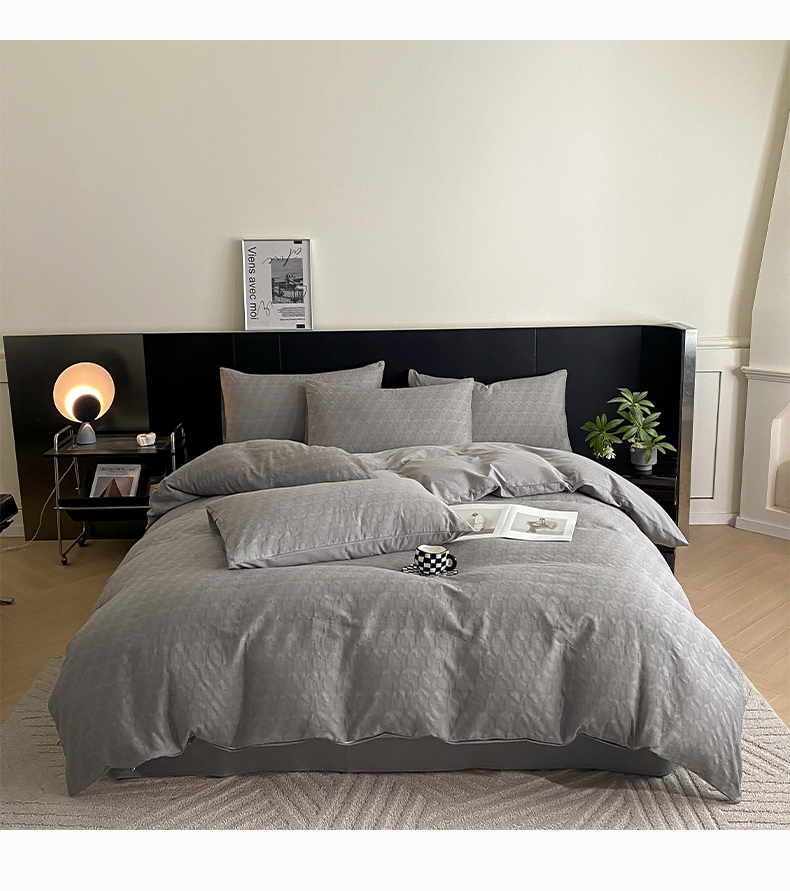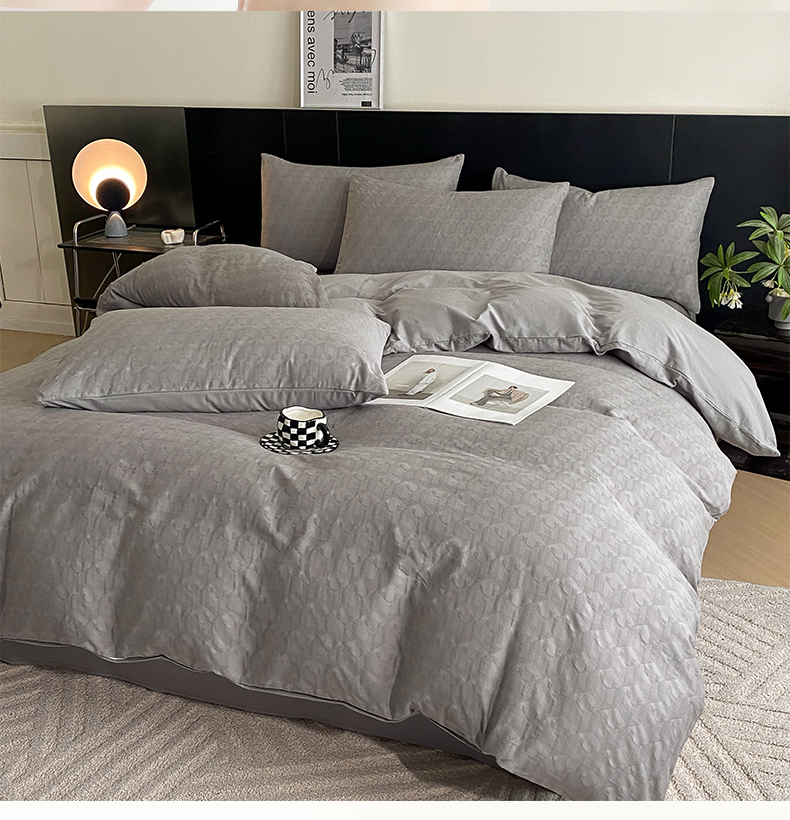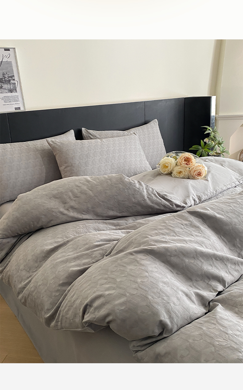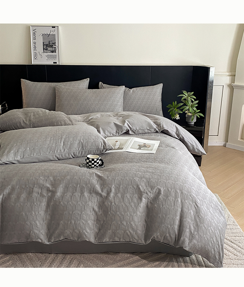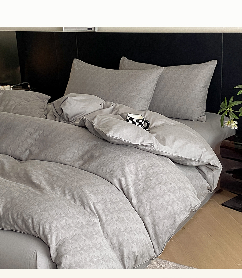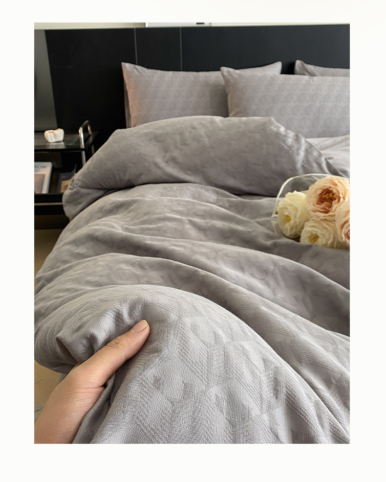 当前位置: 91家纺网 > 商品网购 > 床品套件 > 四件套 > 全棉普通四件套 > 莱登卡奴 2024新款全棉A类水洗棉提花三层纱四件套 艾格-灰