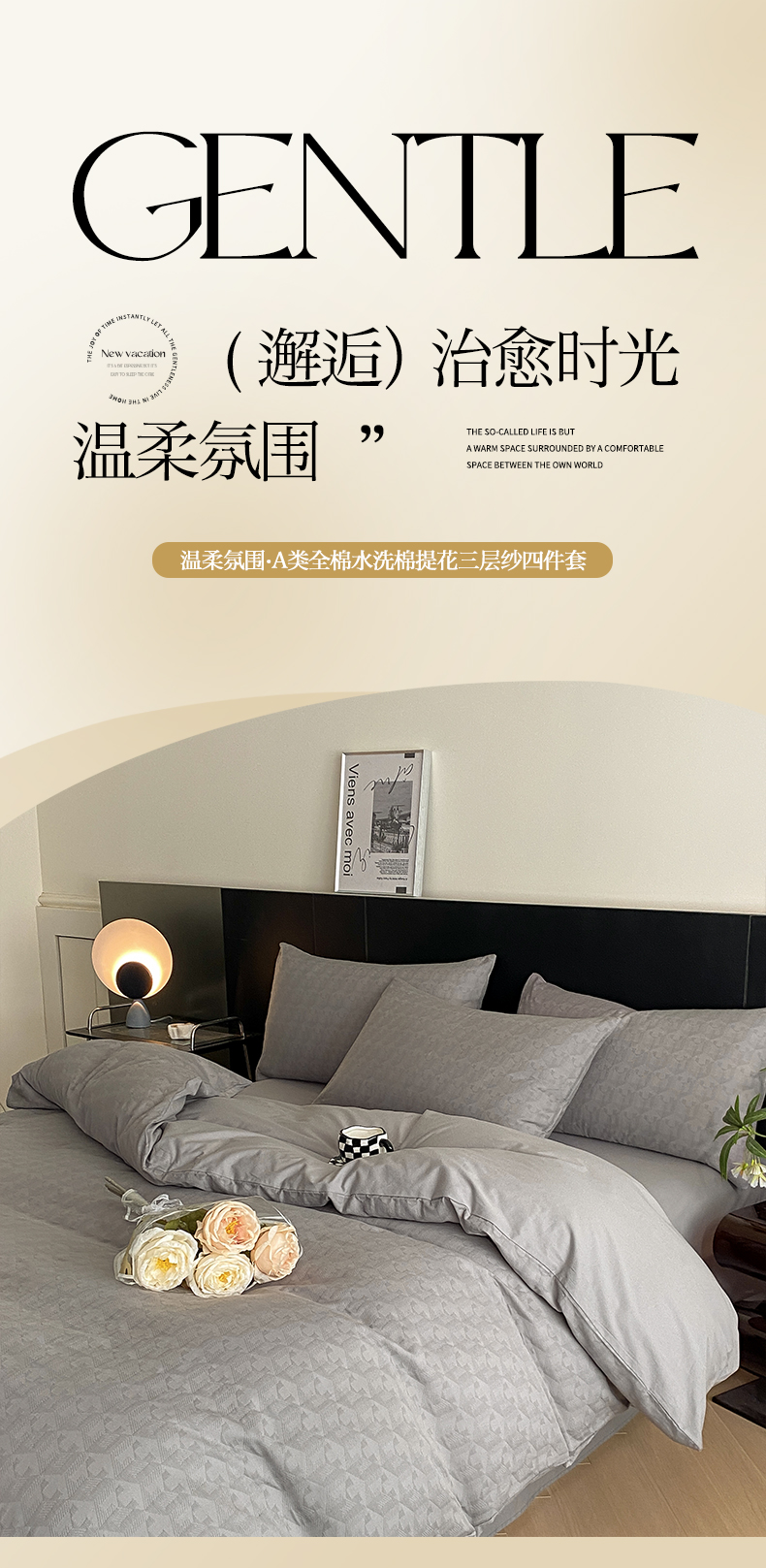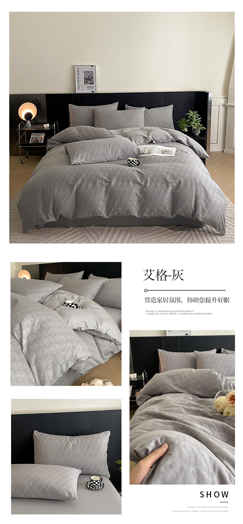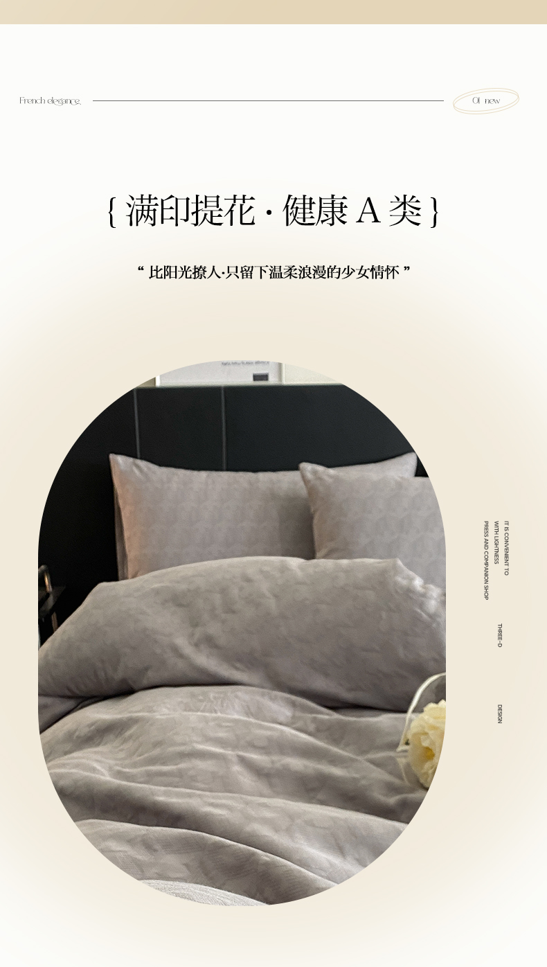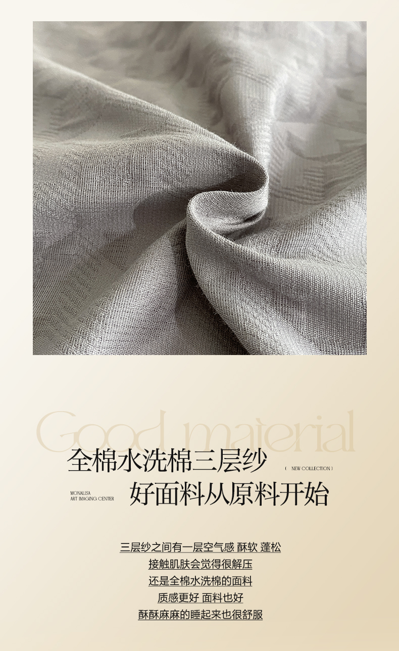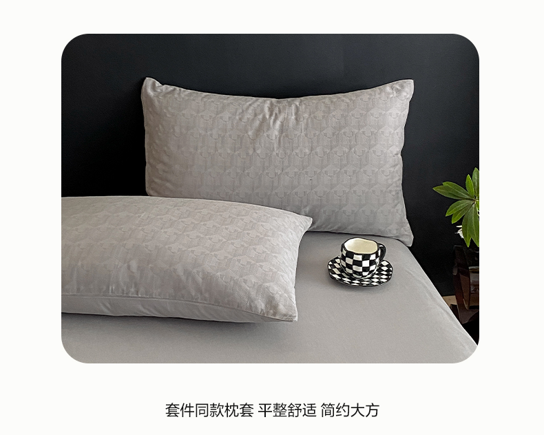 当前位置: 91家纺网 > 商品网购 > 床品套件 > 四件套 > 全棉普通四件套 > 莱登卡奴 2024新款全棉A类水洗棉提花三层纱四件套 艾格-灰