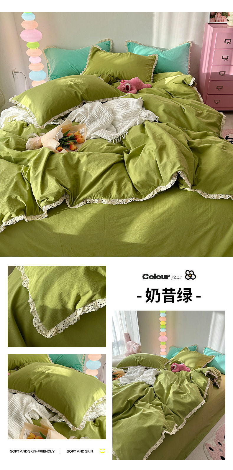 商品名称:千朵 2024新款全棉水洗棉四件套 奶昔绿