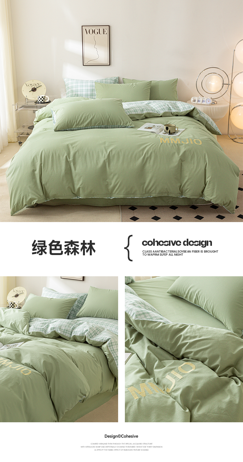 当前位置: 91家纺网 > 商品网购 > 床品套件 > 四件套 > 全棉普通四件套 > 寐眠 2024新款全棉水洗棉刺绣四件套 绿色森林