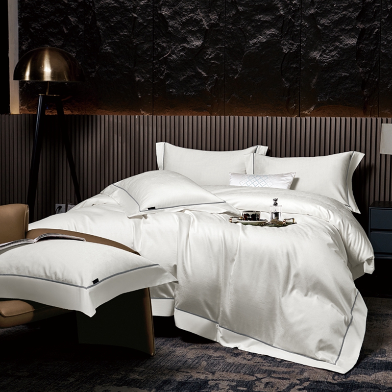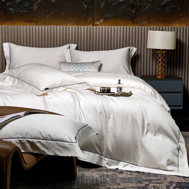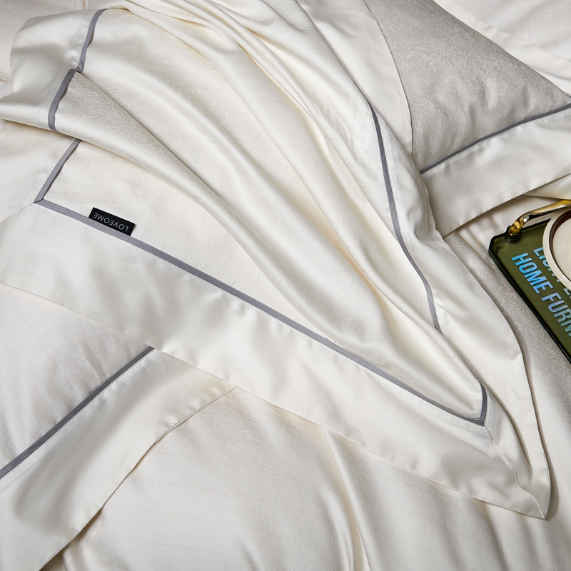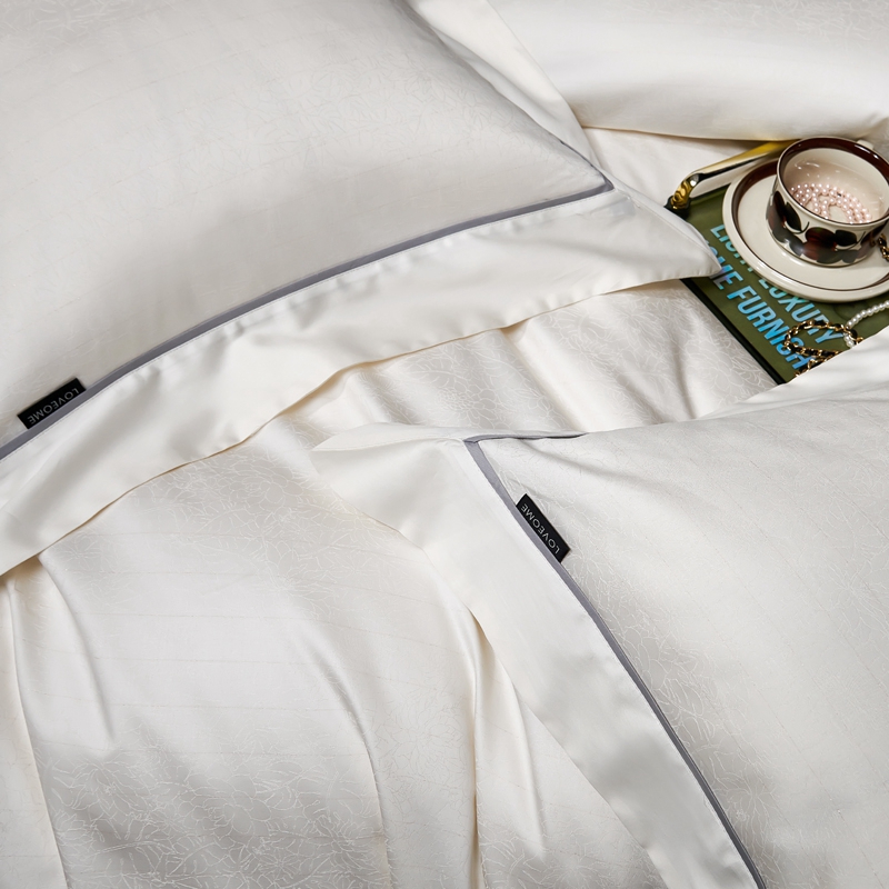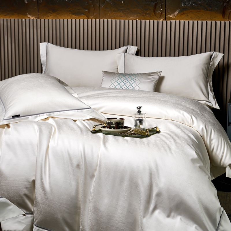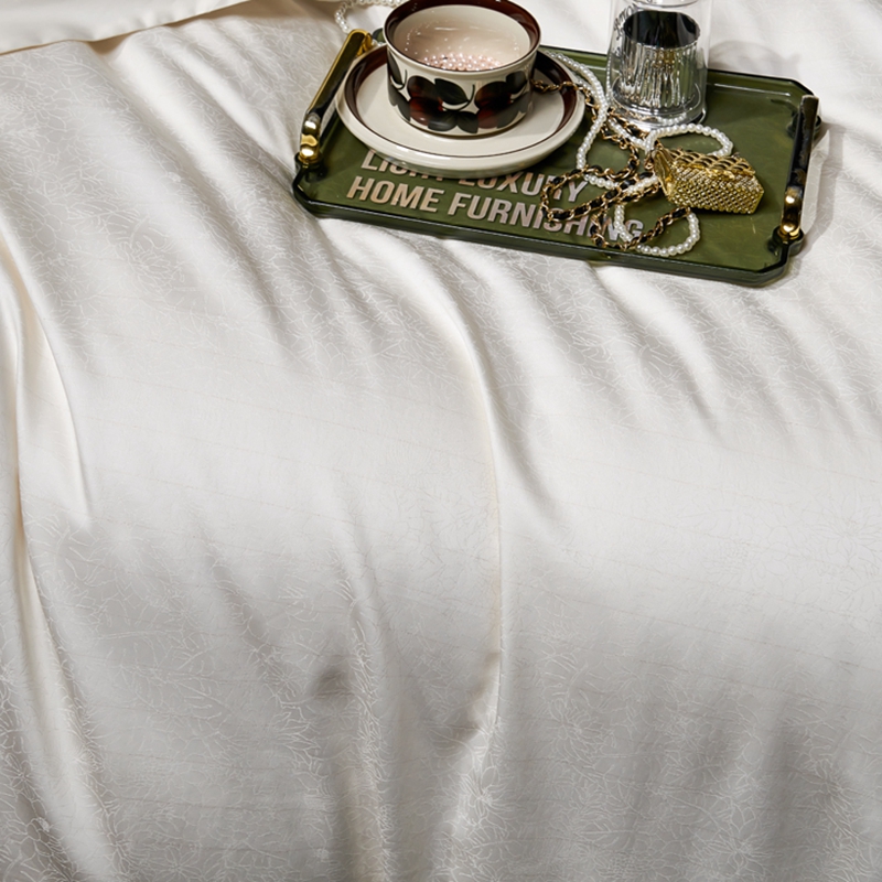 U品汇 2024新款100支长绒棉提花四件套 莱雅-奶油白