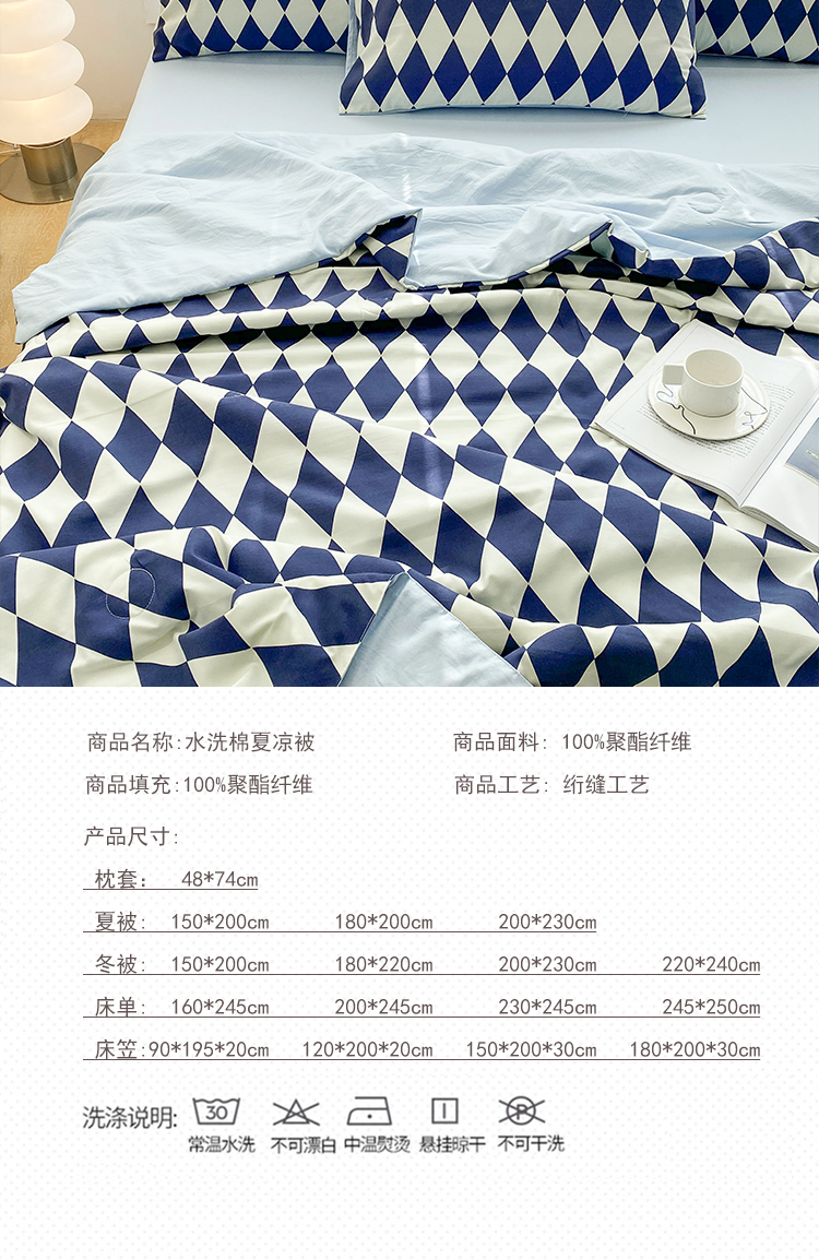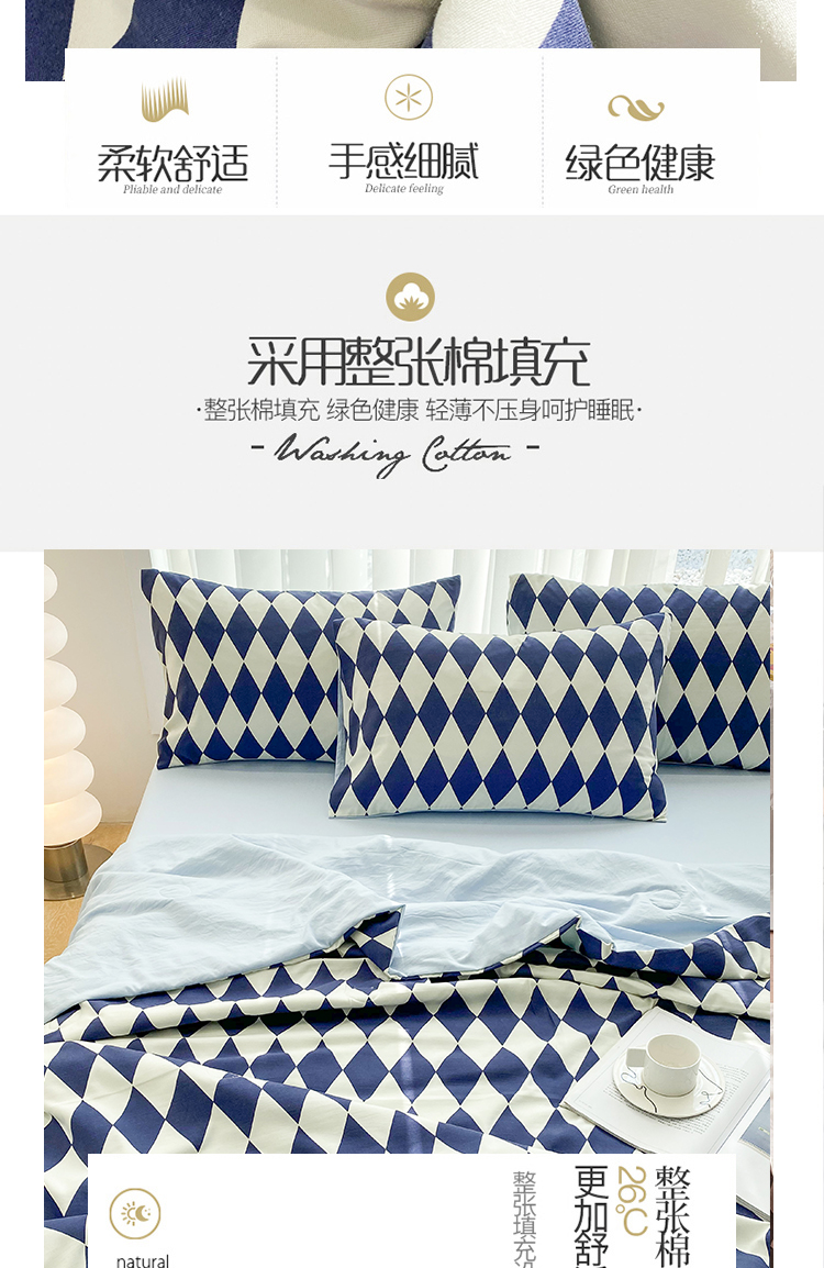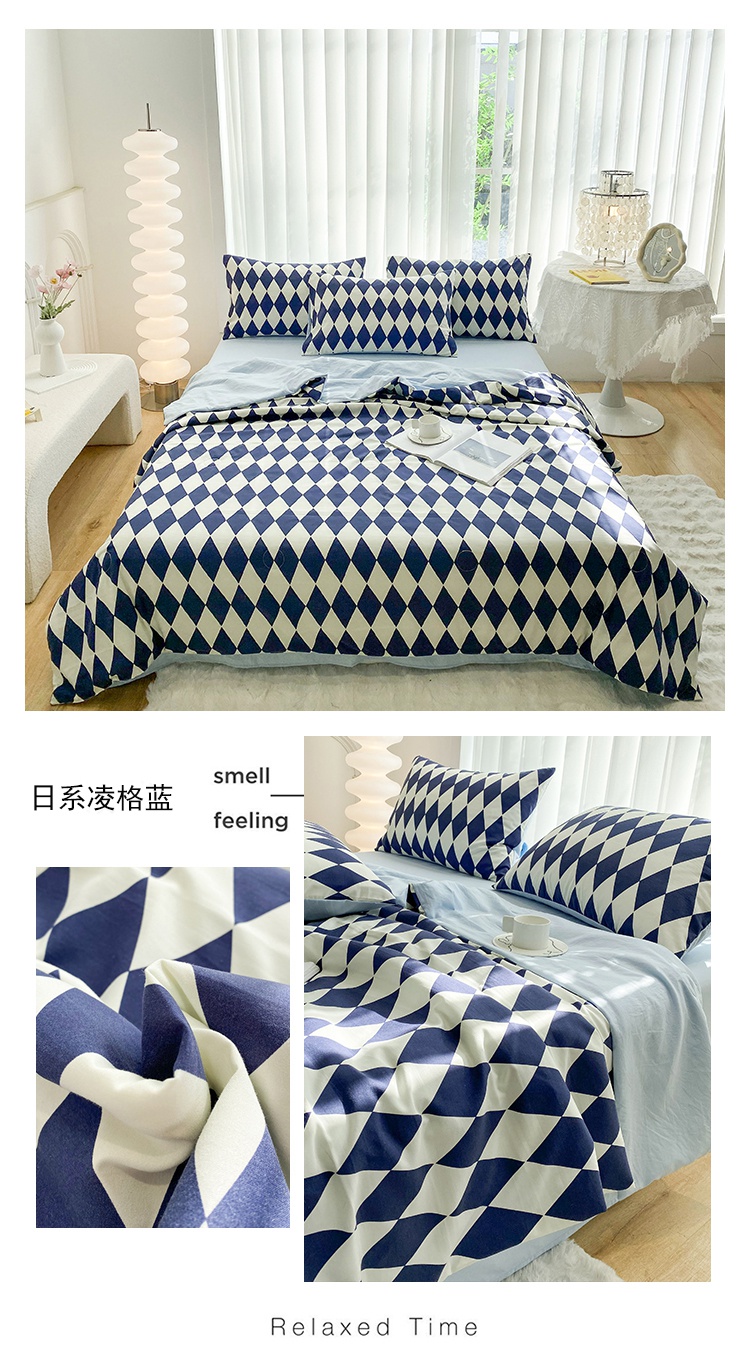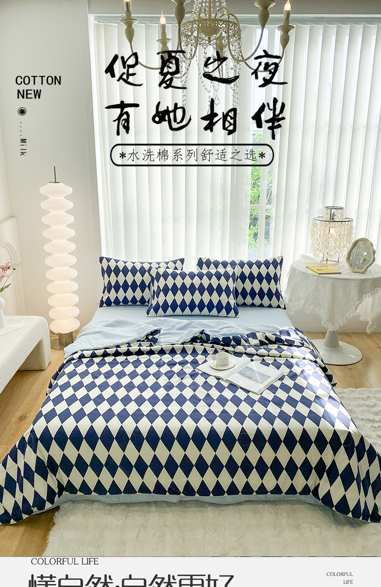 当前位置: 91家纺网 > 商品网购 > 床品套件 > 四件套 > 夏被四件套 > 啊雅家居 2025新款水洗棉条纹印花夏被冬被四件套-床单款 夏被 日系凌格蓝