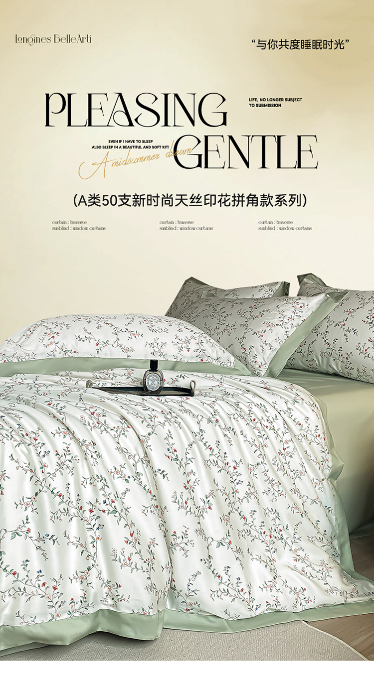 商品名称:蓝米卡夫 2024新品-A类50支新时尚天丝印花拼角款系列 青春印记