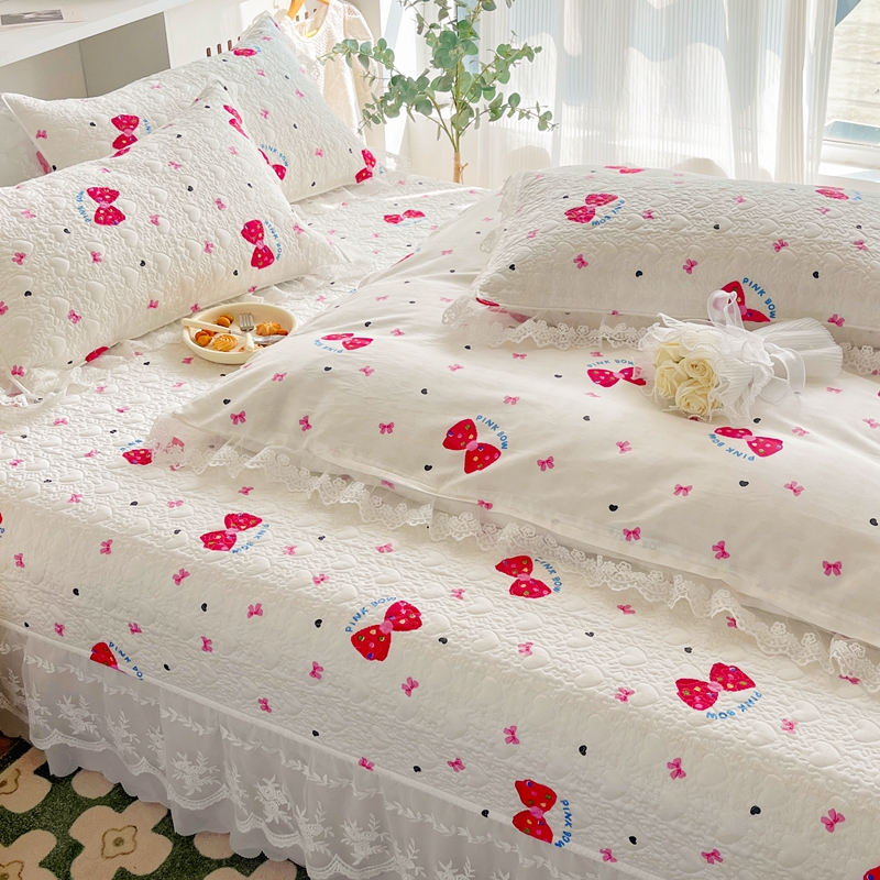 添越 2024小清新韩版蕾丝款花边纯棉夹棉床盖三件套全棉爱心熊-蕾丝款,爱心熊-蕾丝款
