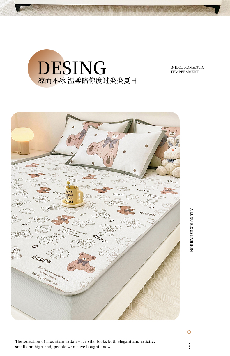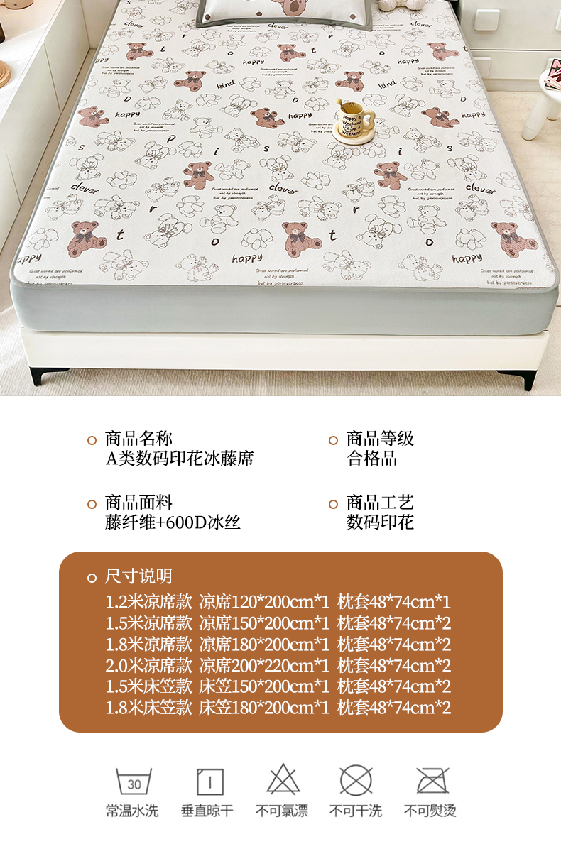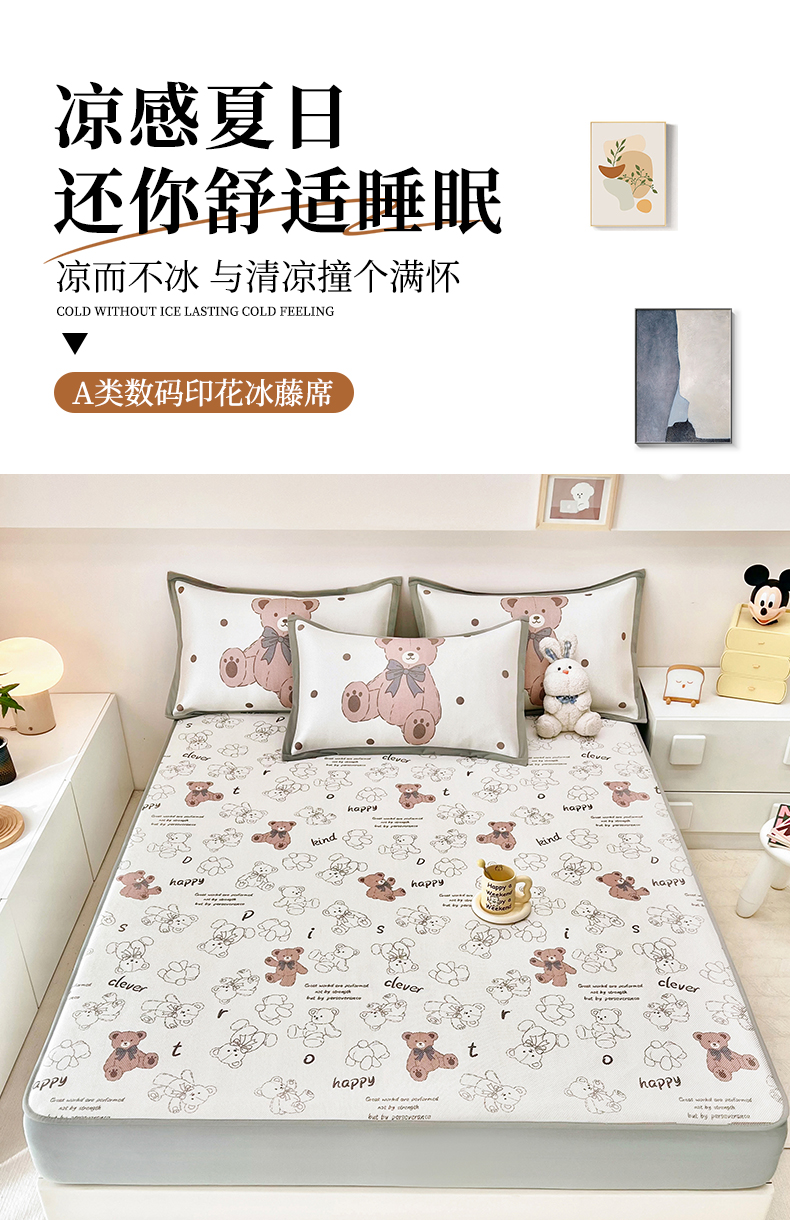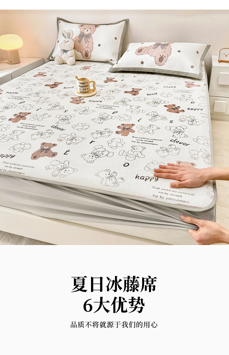 当前位置: 91家纺网 > 商品网购 > 床上用品 > 凉席 > 其他凉席 > 全季家居 2024新款5A抗菌小清新数码印花冰藤席 床笠款-宝宝熊