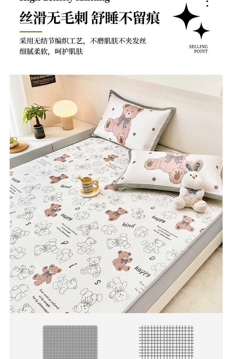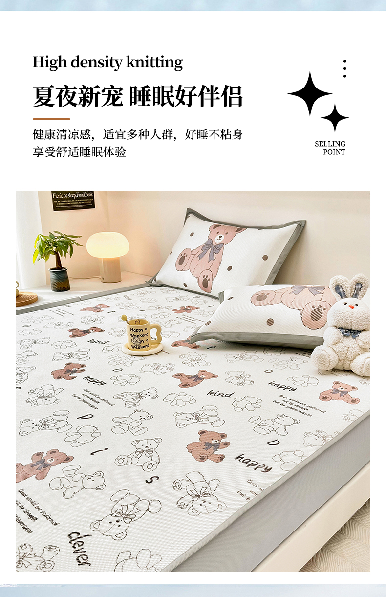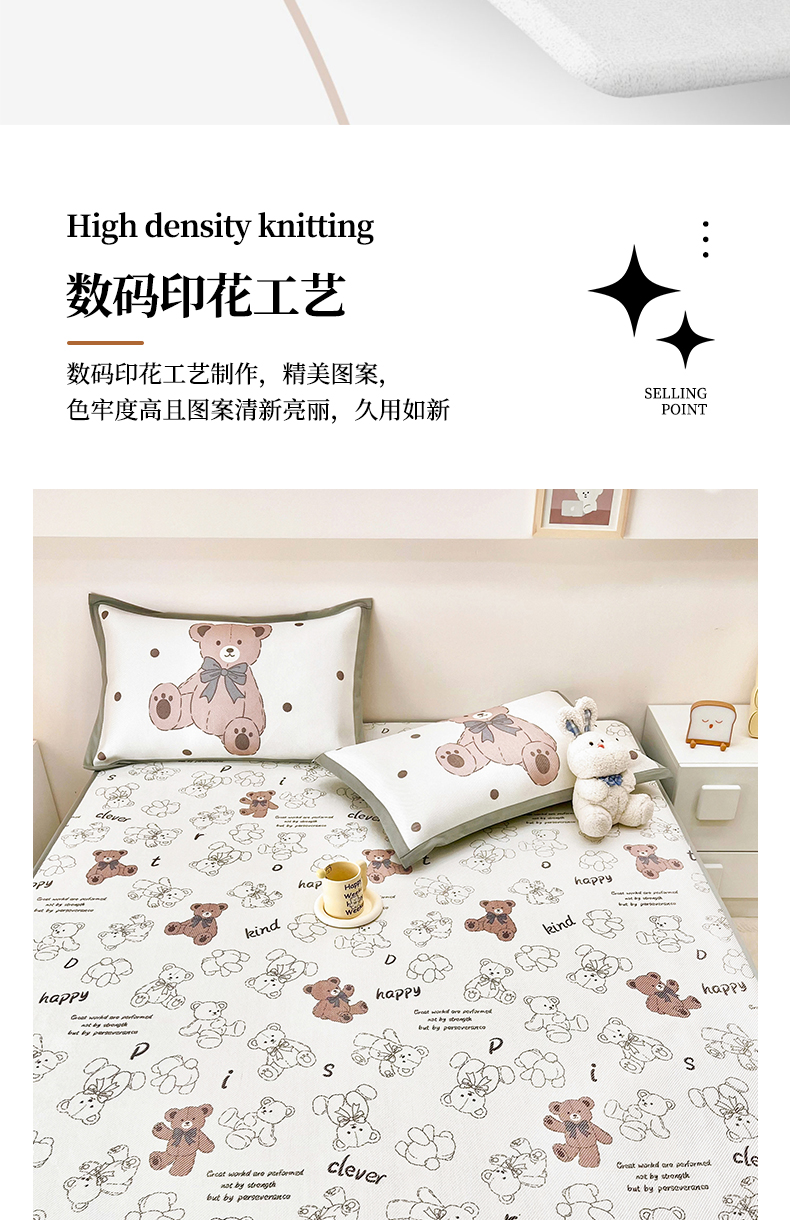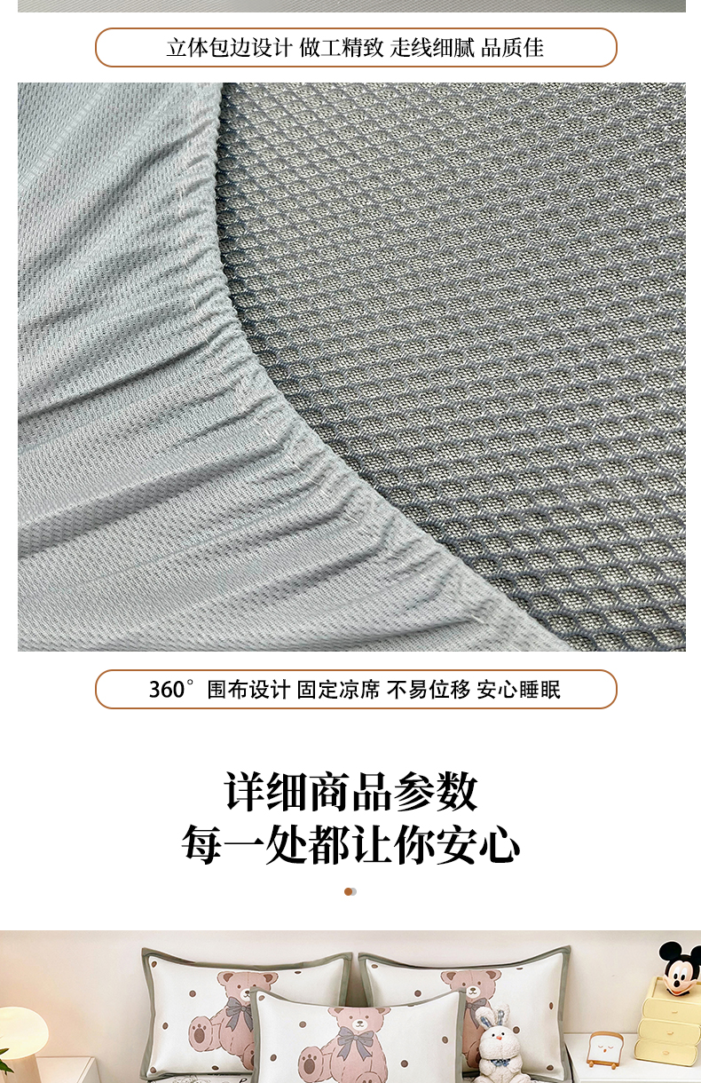 当前位置: 91家纺网 > 商品网购 > 床上用品 > 凉席 > 其他凉席 > 全季家居 2024新款5A抗菌小清新数码印花冰藤席 床笠款-宝宝熊
