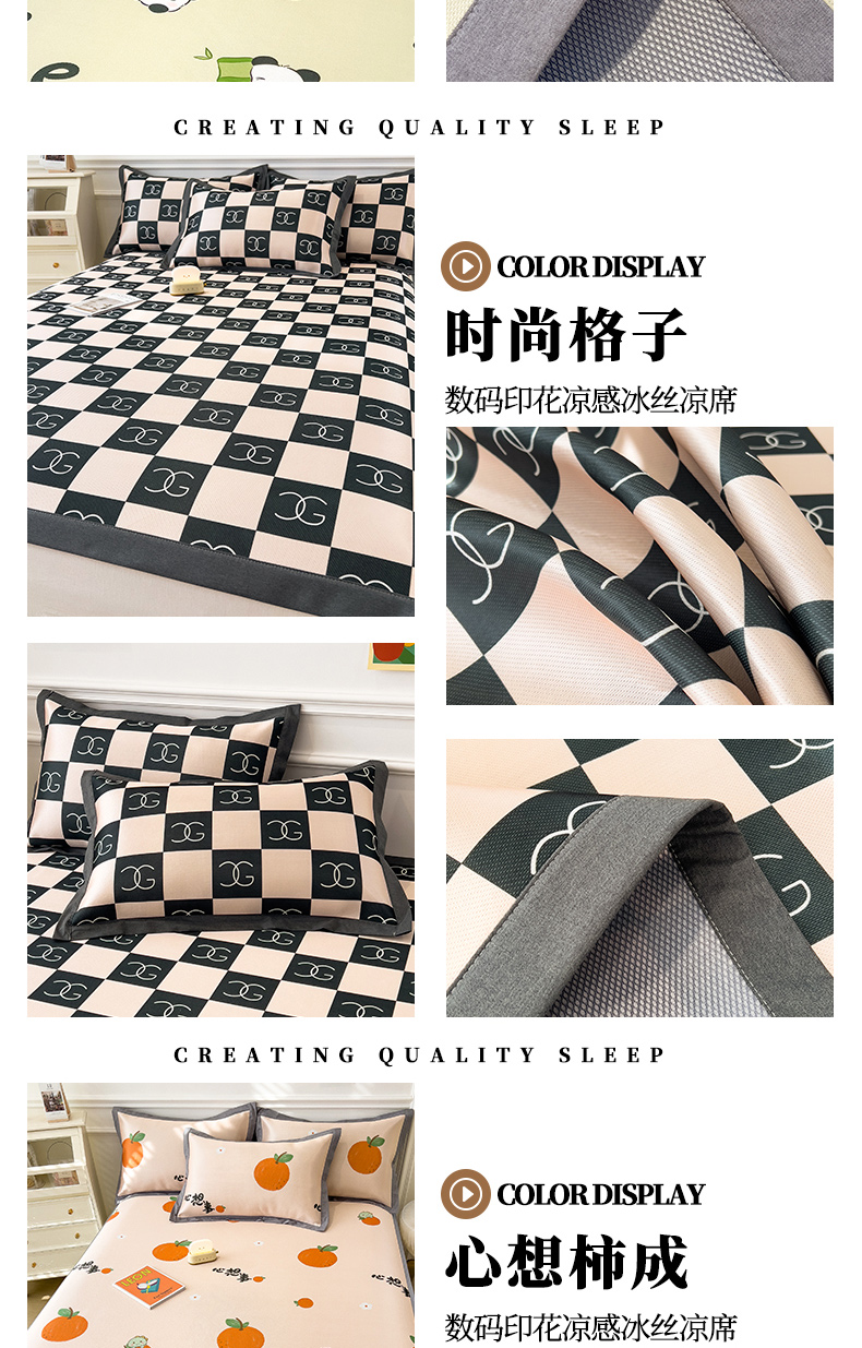 商品名称:孩子王家纺 2024新款凉感卡通冰丝席-成人款 好柿成双