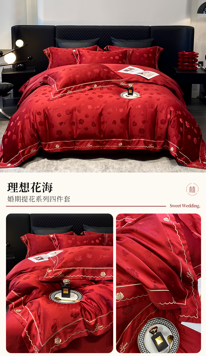 优悦生活馆 2024新款提花婚庆四件套 理想花海