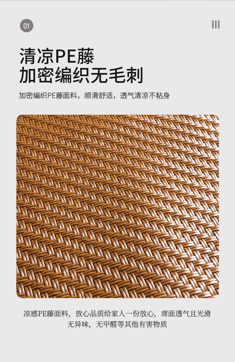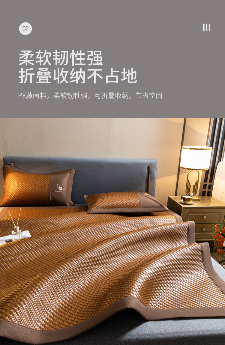 (总)席之家 2025新款艾草宽边款凉席藤席三件套,饼干花,步步高,经典格,罗马格,水中花