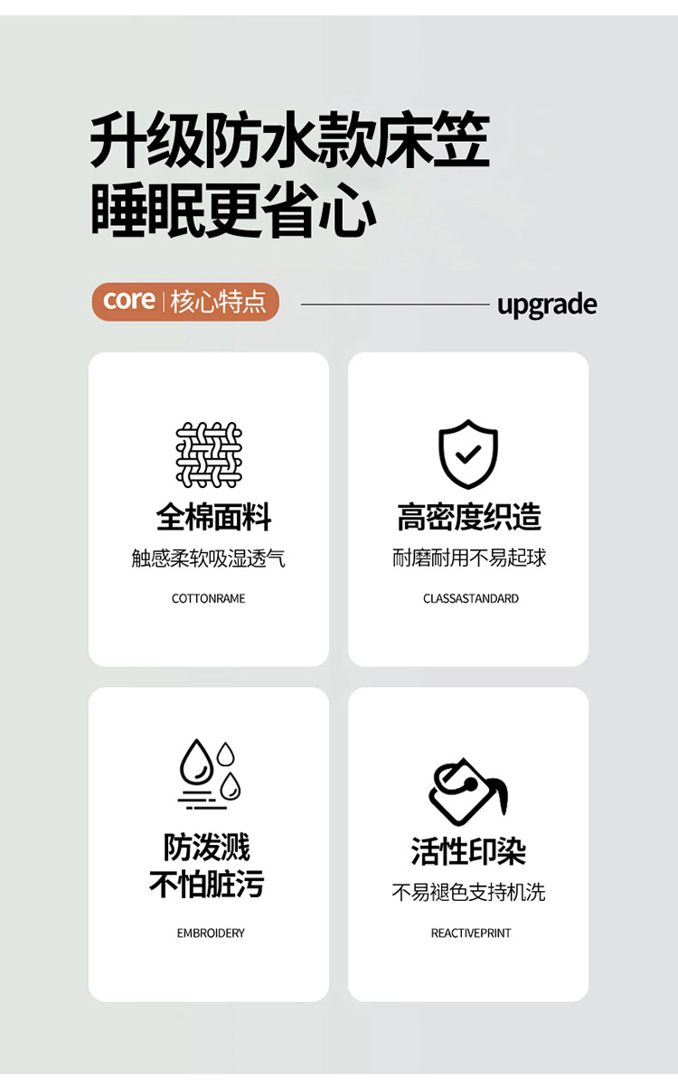 (总)床笠人家 2023新款全棉水洗棉防水床笠,巴洛克-灰,白小格,灰小格,蓝格,绿小格,米小格,雪山白,玉格,珍珠灰