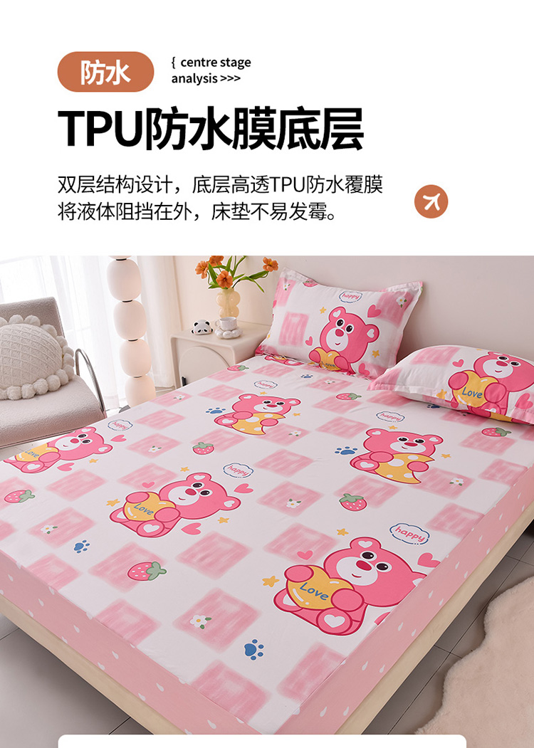 (总)床笠人家 2025新款全棉印花防水床笠防水隔尿透气-印花防水床笠,草莓熊,贝贝熊,千星之城,草莓兔,亲密伙伴,波点熊猫,甜蜜告白,班尼熊,大桔大利,浪漫星空,绿野仙踪,首尔之约,猪柿顺利,安琪儿,萌宠熊宝