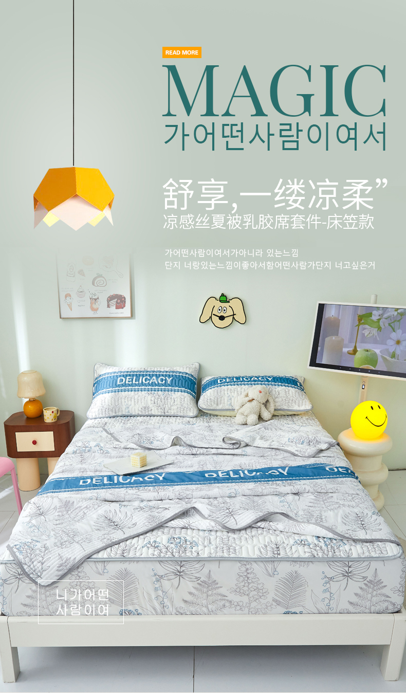 商品名称:LIFE.丽芙 2024年新品0.4乳胶凉席加厚床笠款三件套+凉感丝夏被可组合四件套-图片一 格罗
