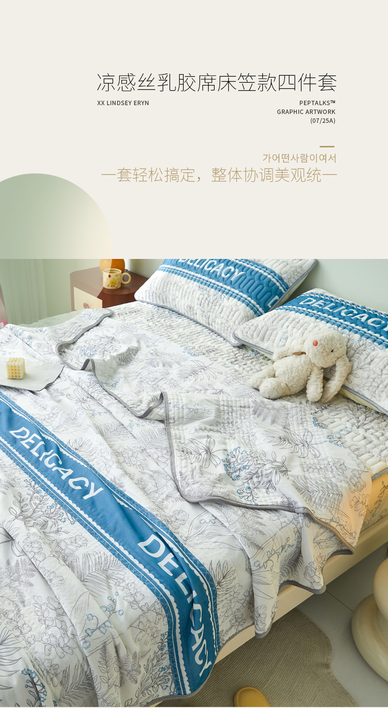 LIFE.丽芙 2024年新品0.4乳胶凉席加厚床笠款三件套+凉感丝夏被可组合四件套-图片一 格罗