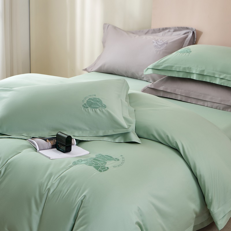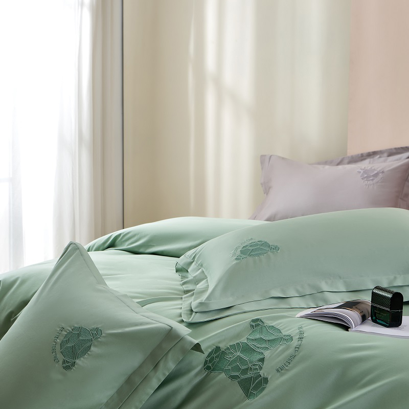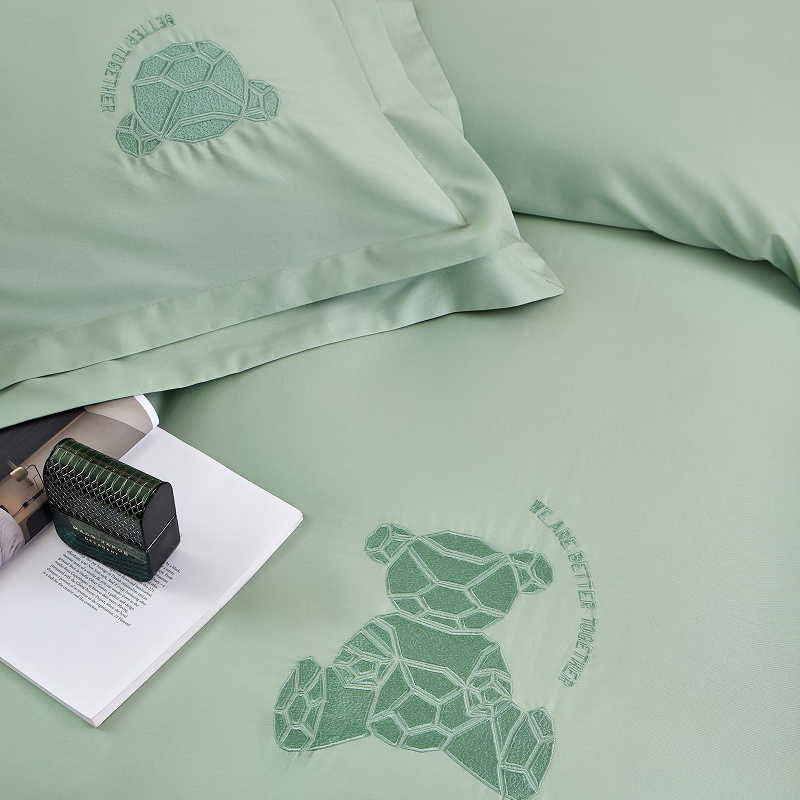 LADY COCO 2024新款全棉翻盖式三边拉链四件套-东方好棉冠军熊系列 绿色