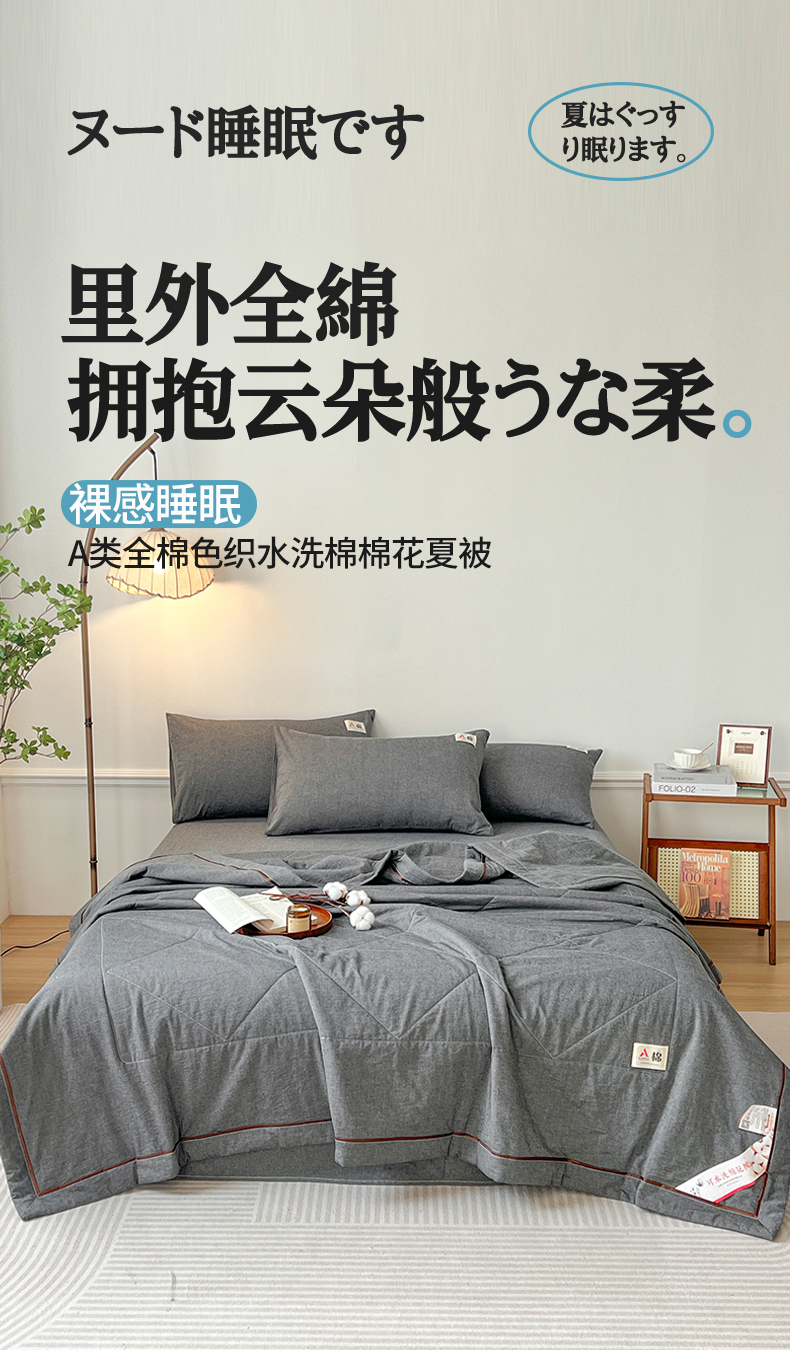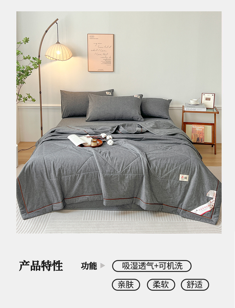 21度C 2024新款A类全棉色织水洗棉棉花夏被 洛卡深灰