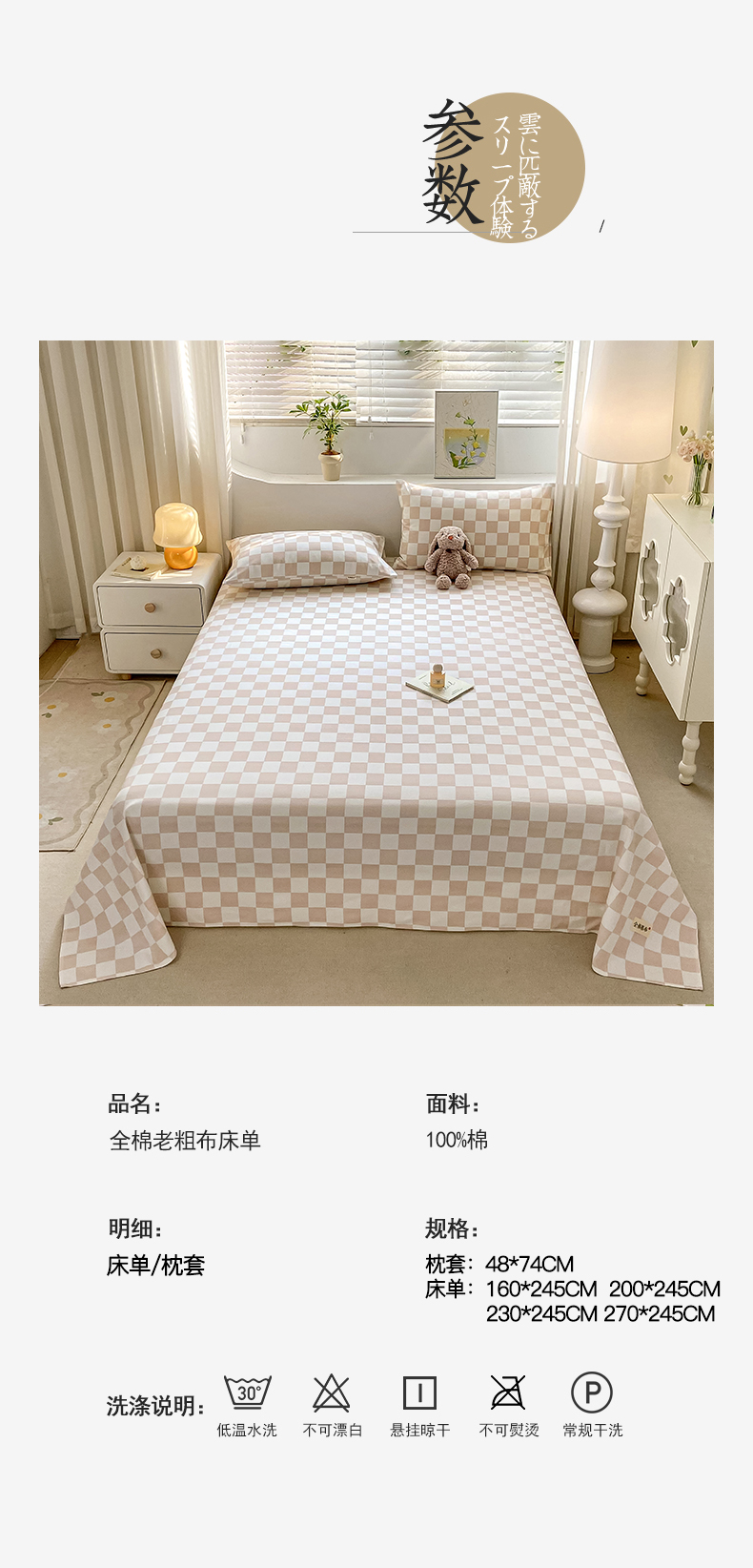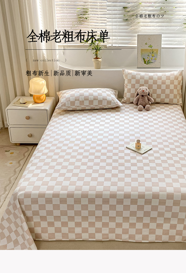 卧趣家纺 2024新品全棉老粗布单品床单床笠系列-单品床单系列 菲颂-米