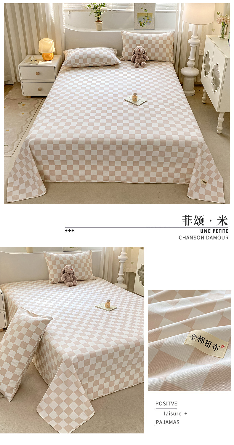 • 91家纺网 家纺一手货源 找家纺 卧趣家纺 2024新品全棉老粗布单品床单床笠系列-单品床单系列 菲颂-米