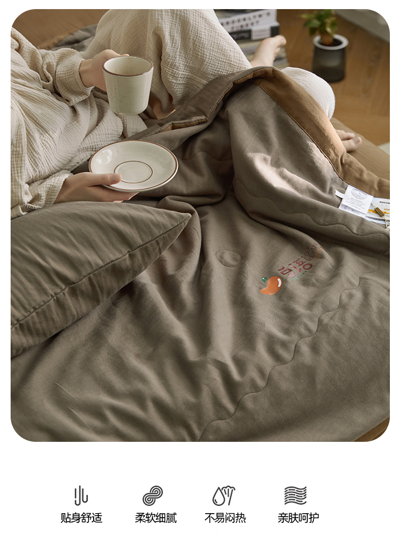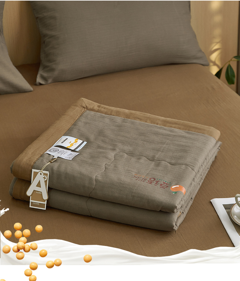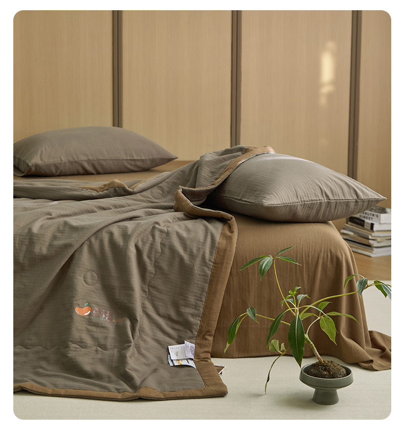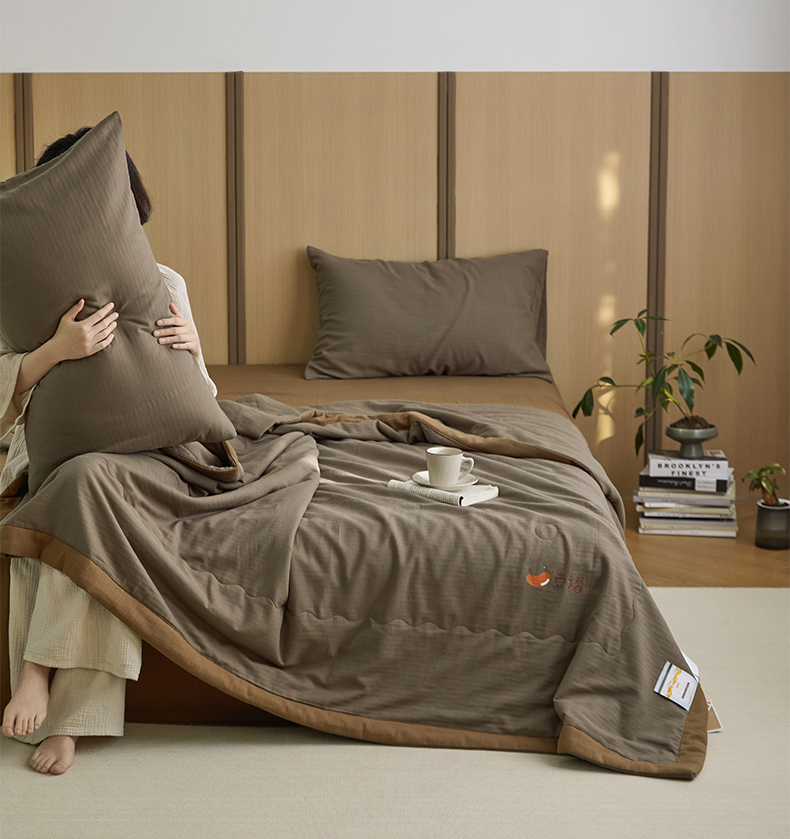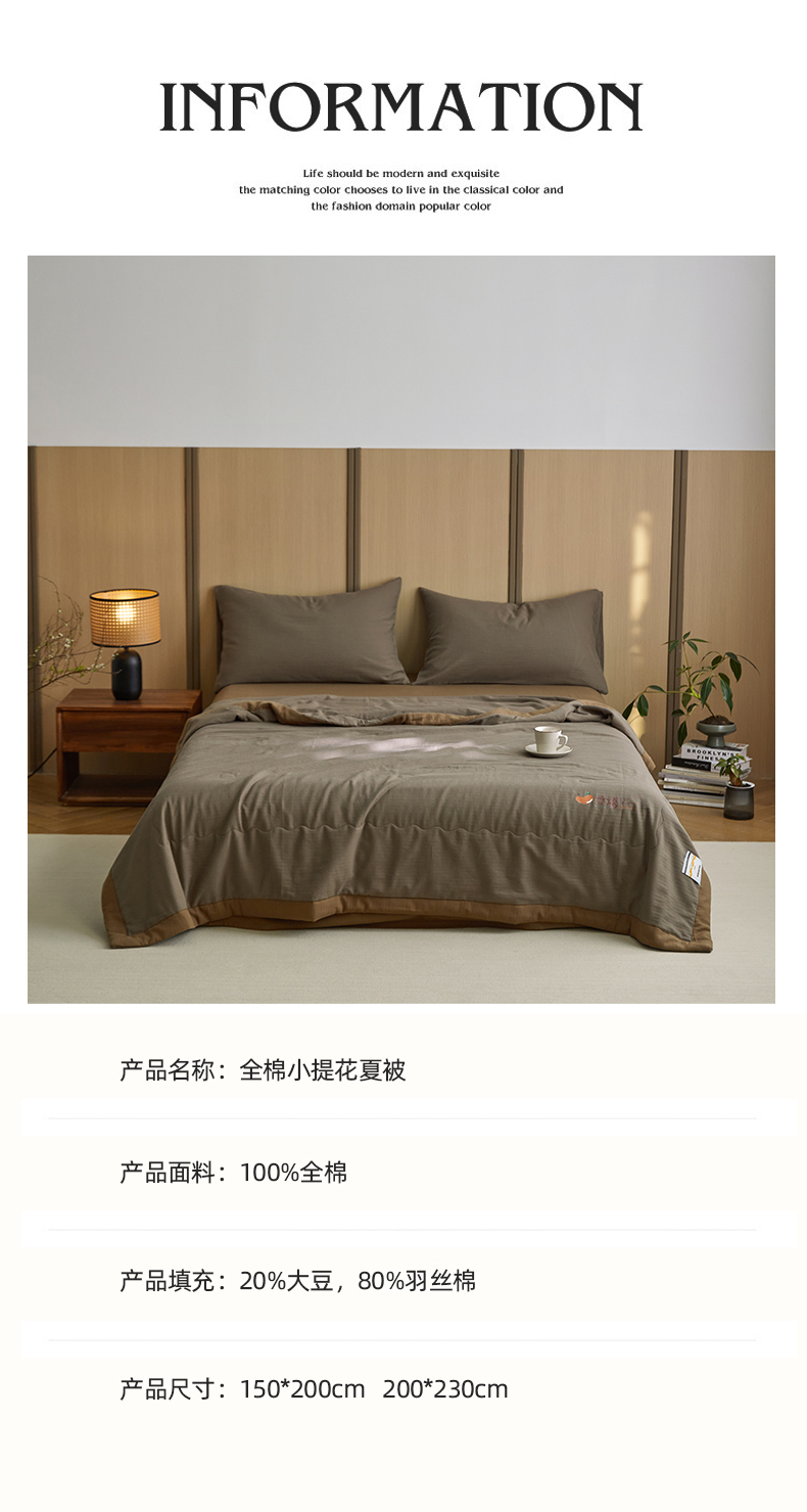 • 91家纺网 家纺一手货源 找家纺 梦享生活家居 2024新款A类双层纱全棉提花大豆夏被 朱古力