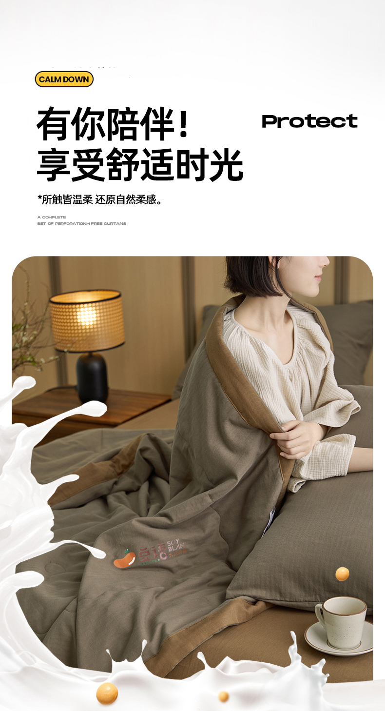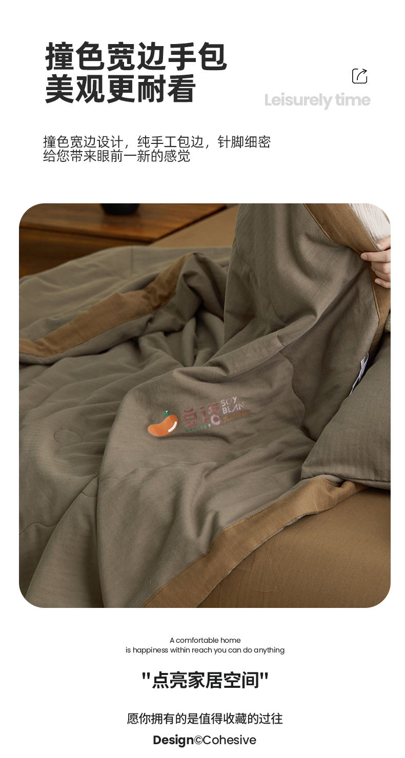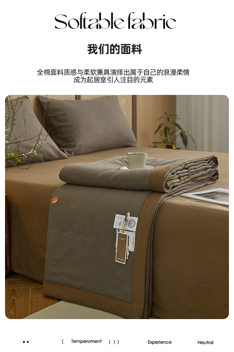 • 91家纺网 家纺一手货源 找家纺 梦享生活家居 2024新款A类双层纱全棉提花大豆夏被 朱古力